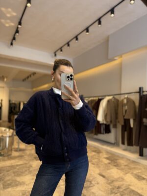 Dik yaka cepli triko hırka