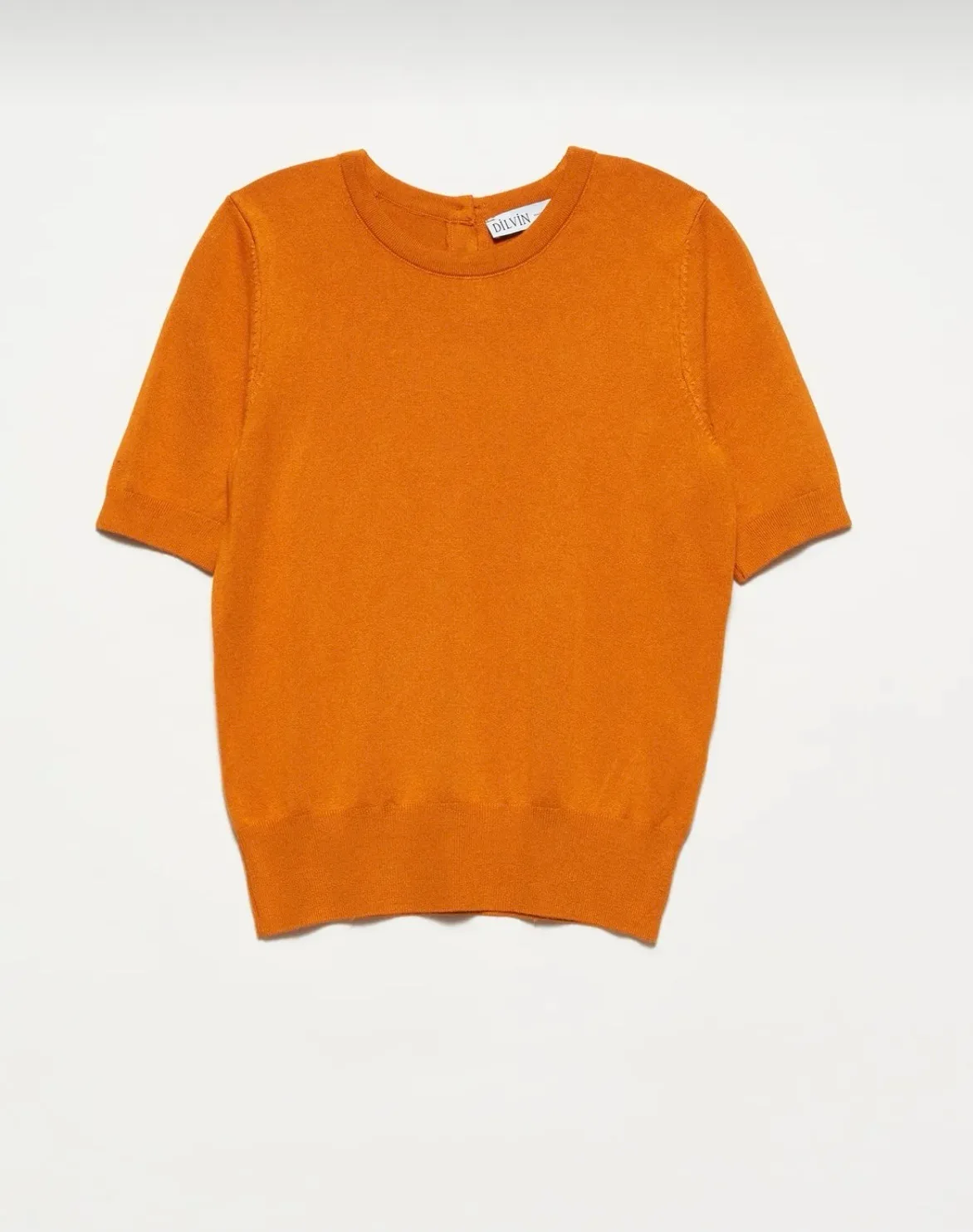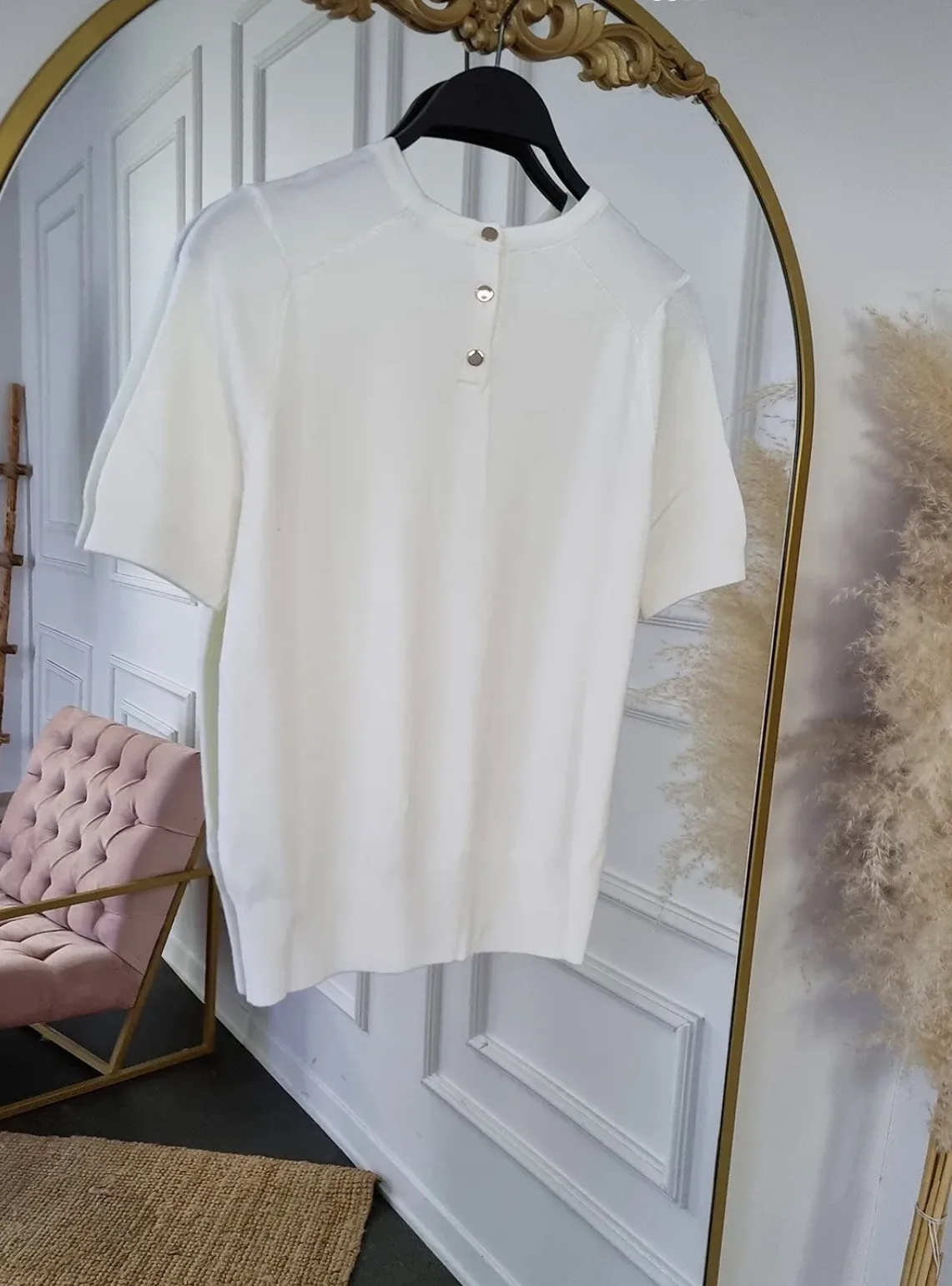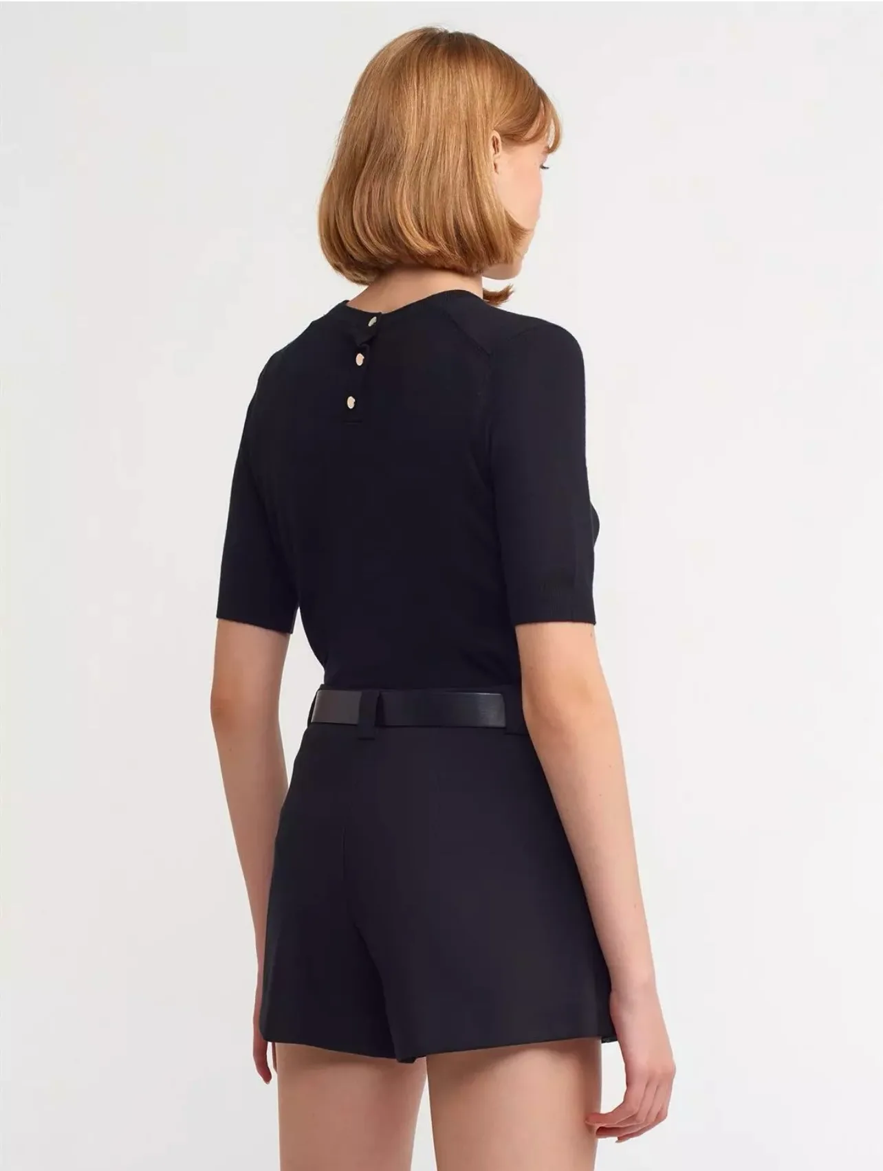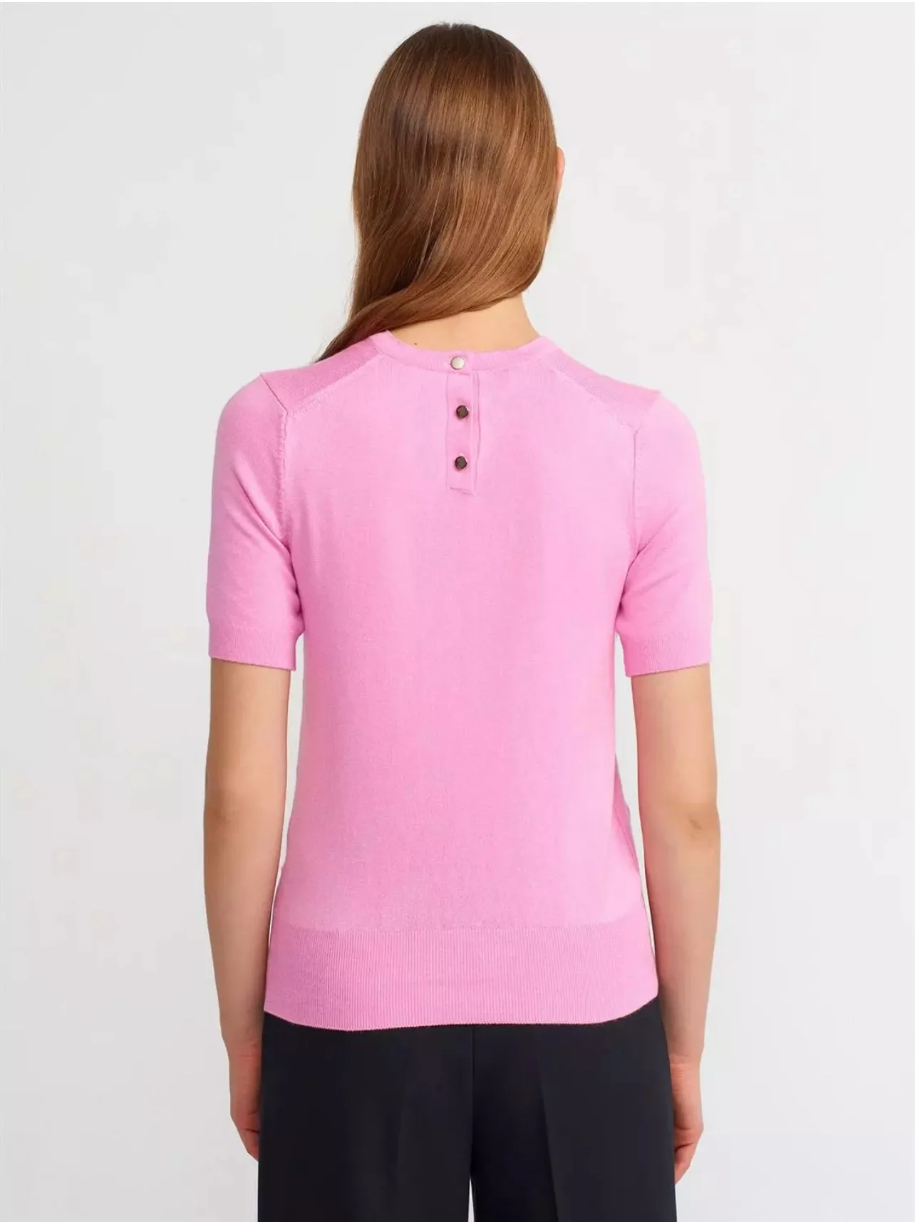 Bisiklet yaka arkası düğmeli kısa kol kazak