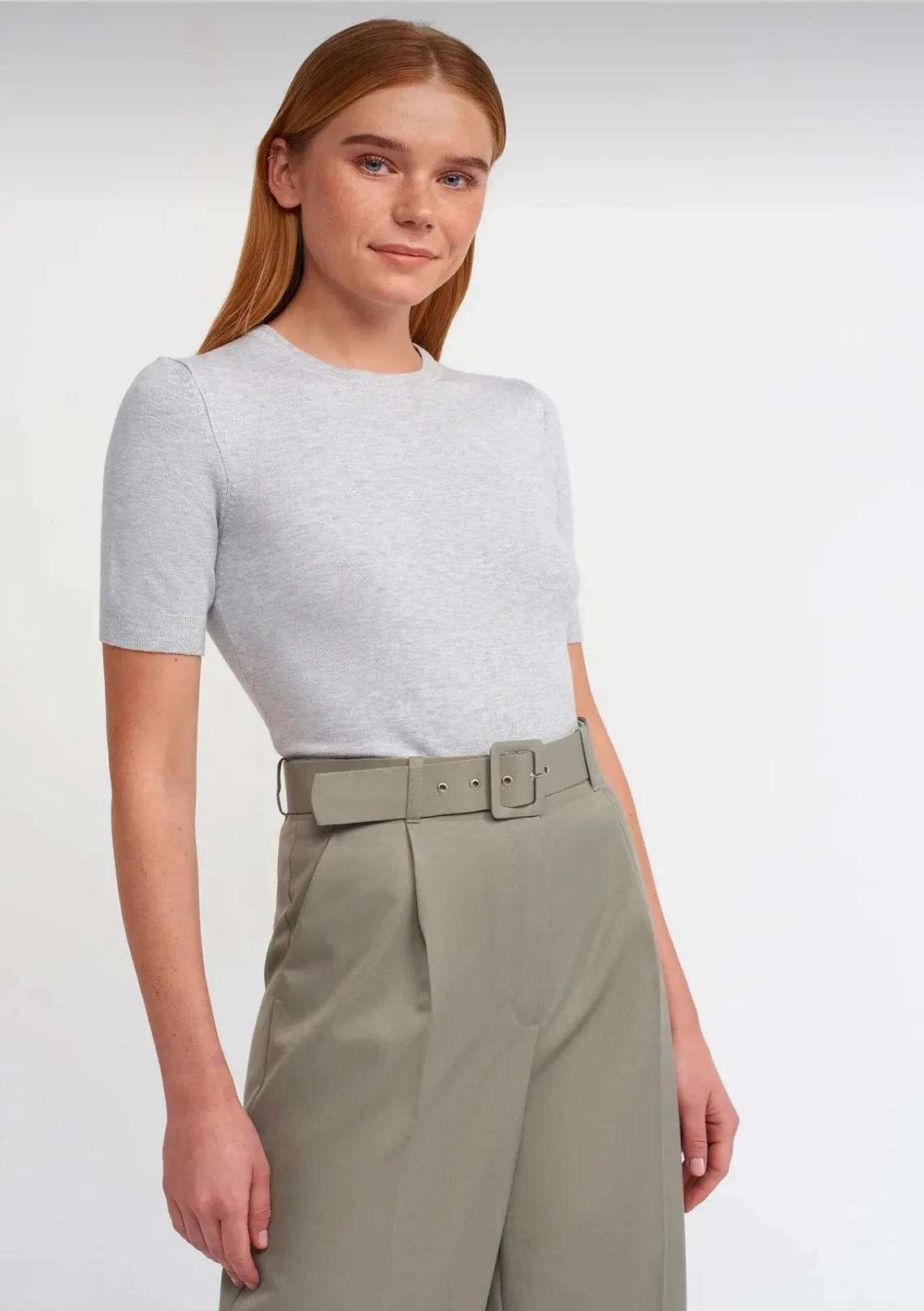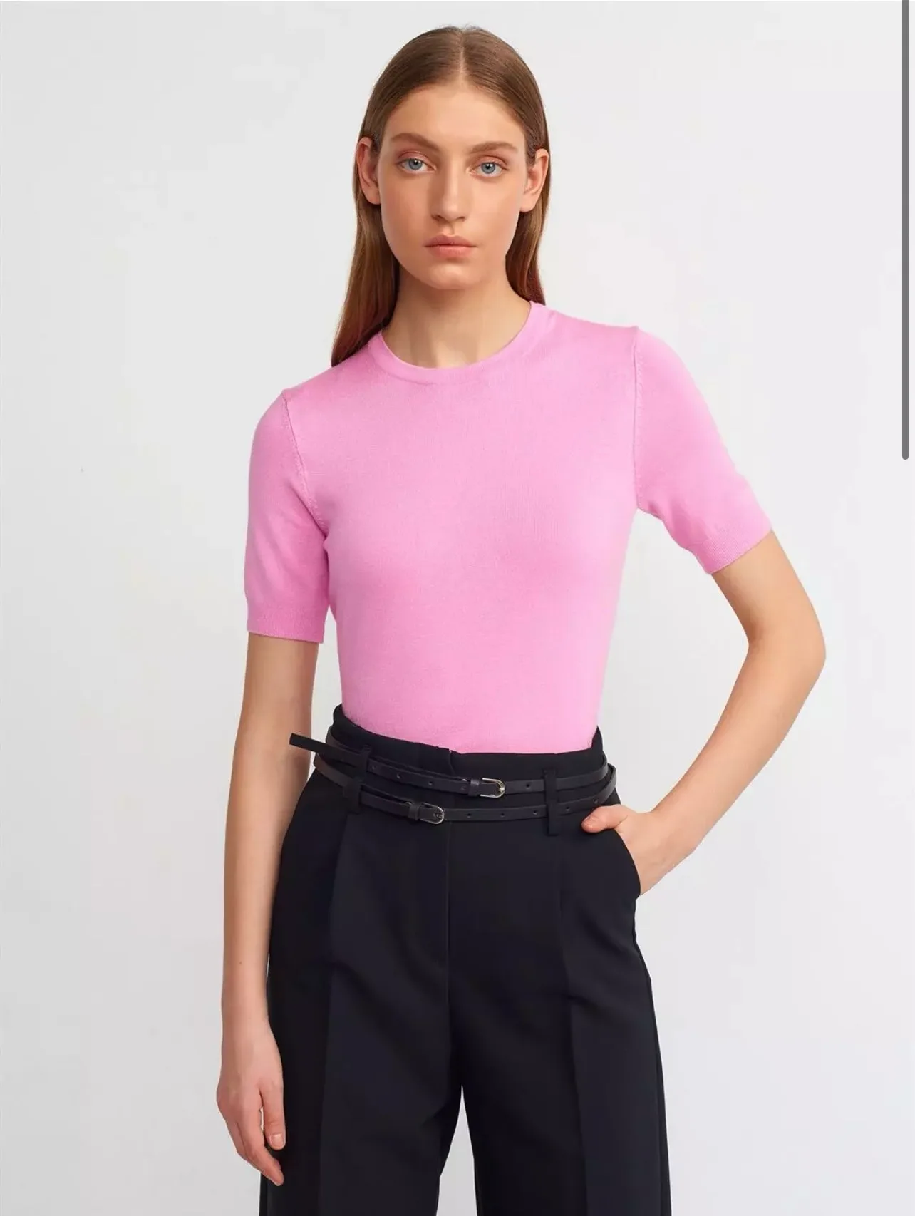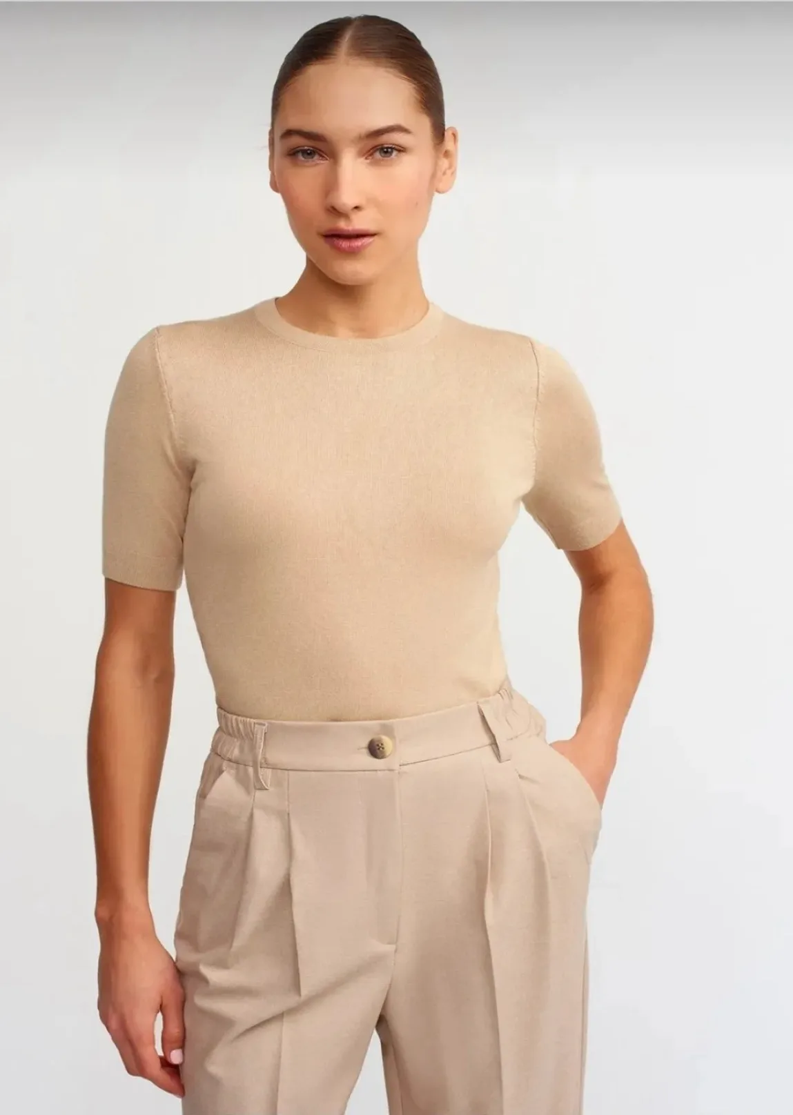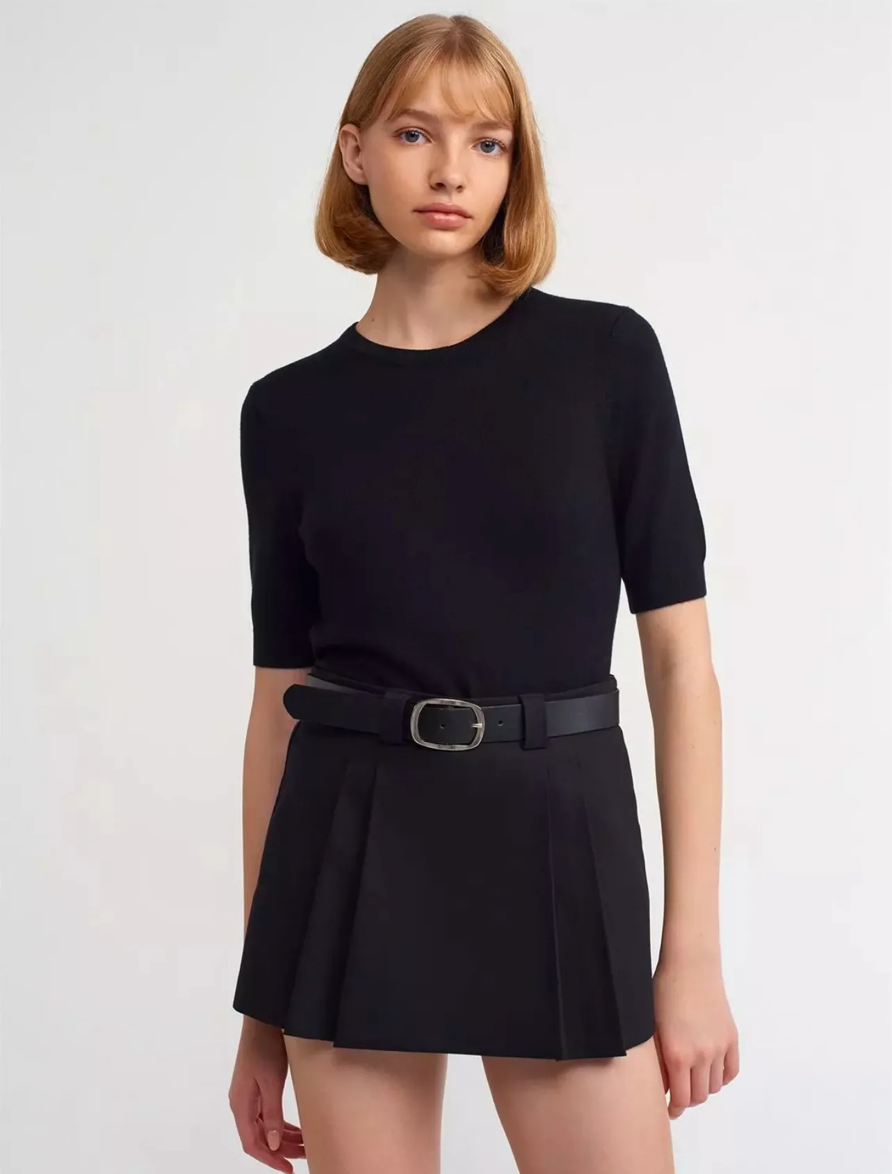 Bisiklet yaka arkası düğmeli kısa kol kazak