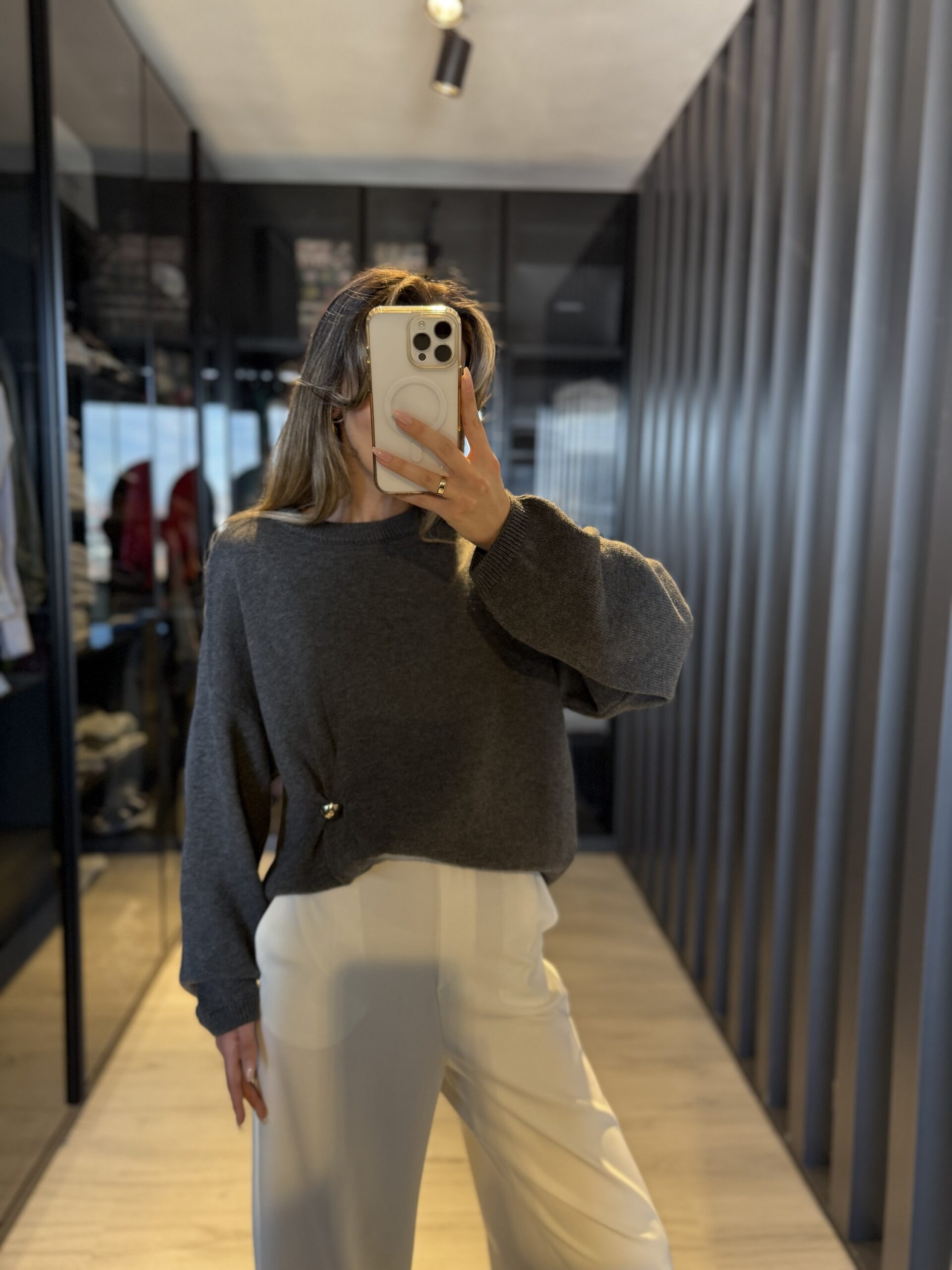 “Büzgü Düğme Detaylı Triko Kazak” için yorum yapan ilk kişi siz olun