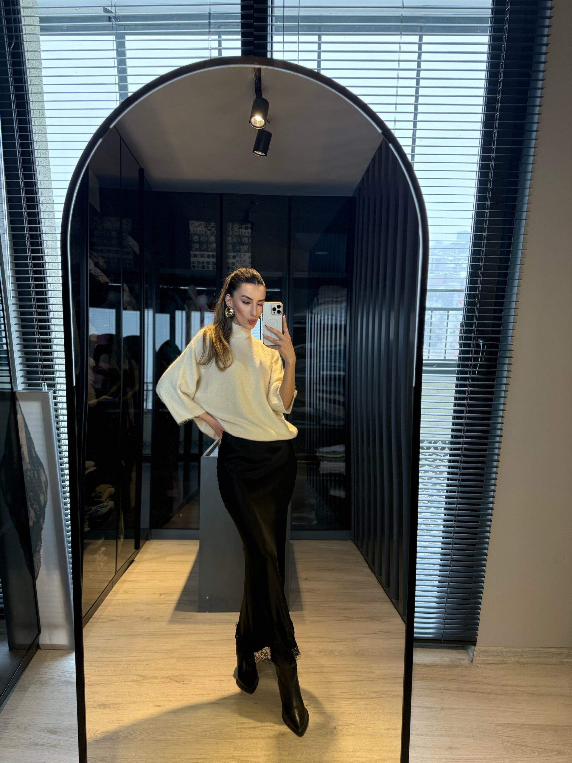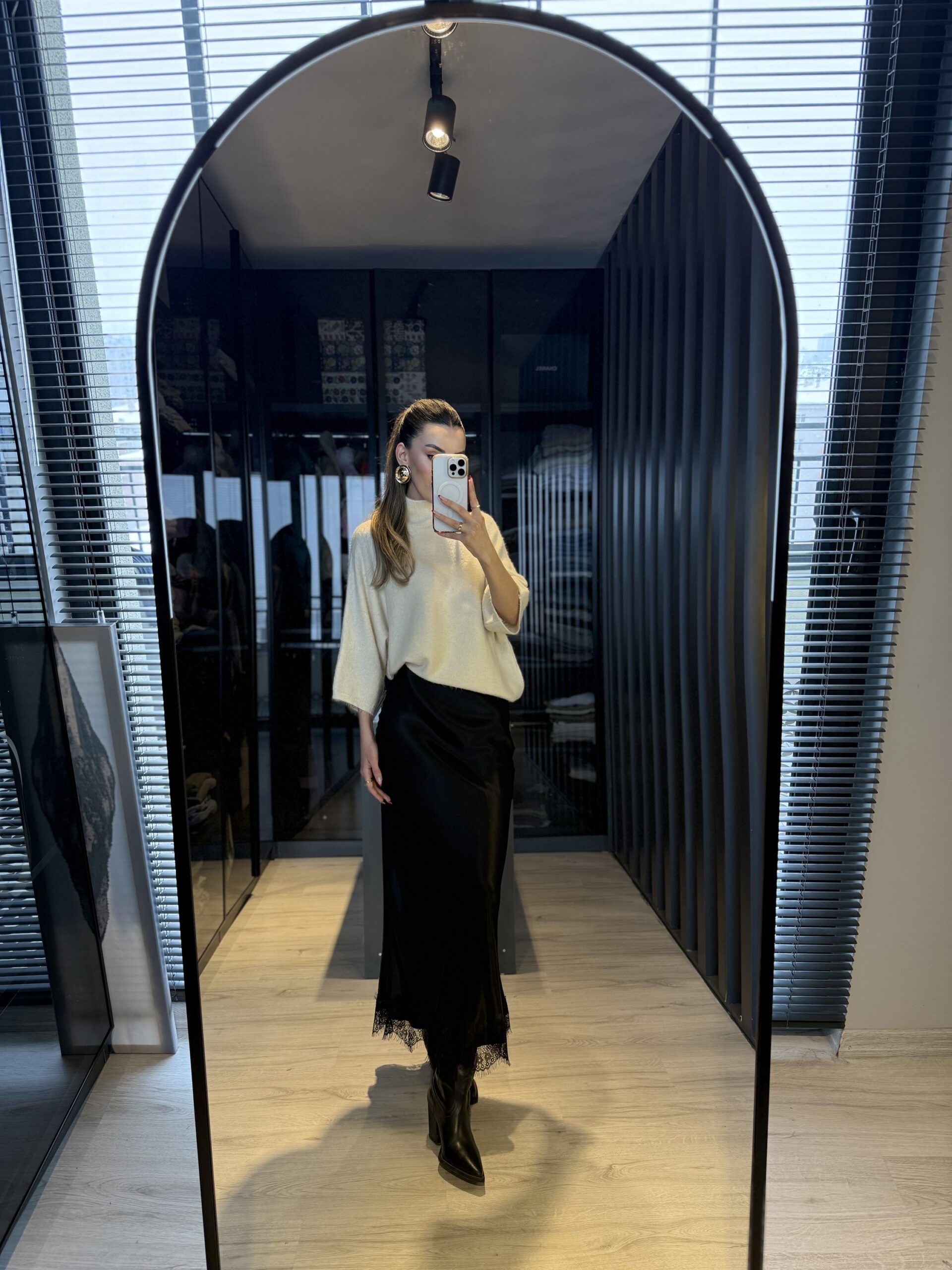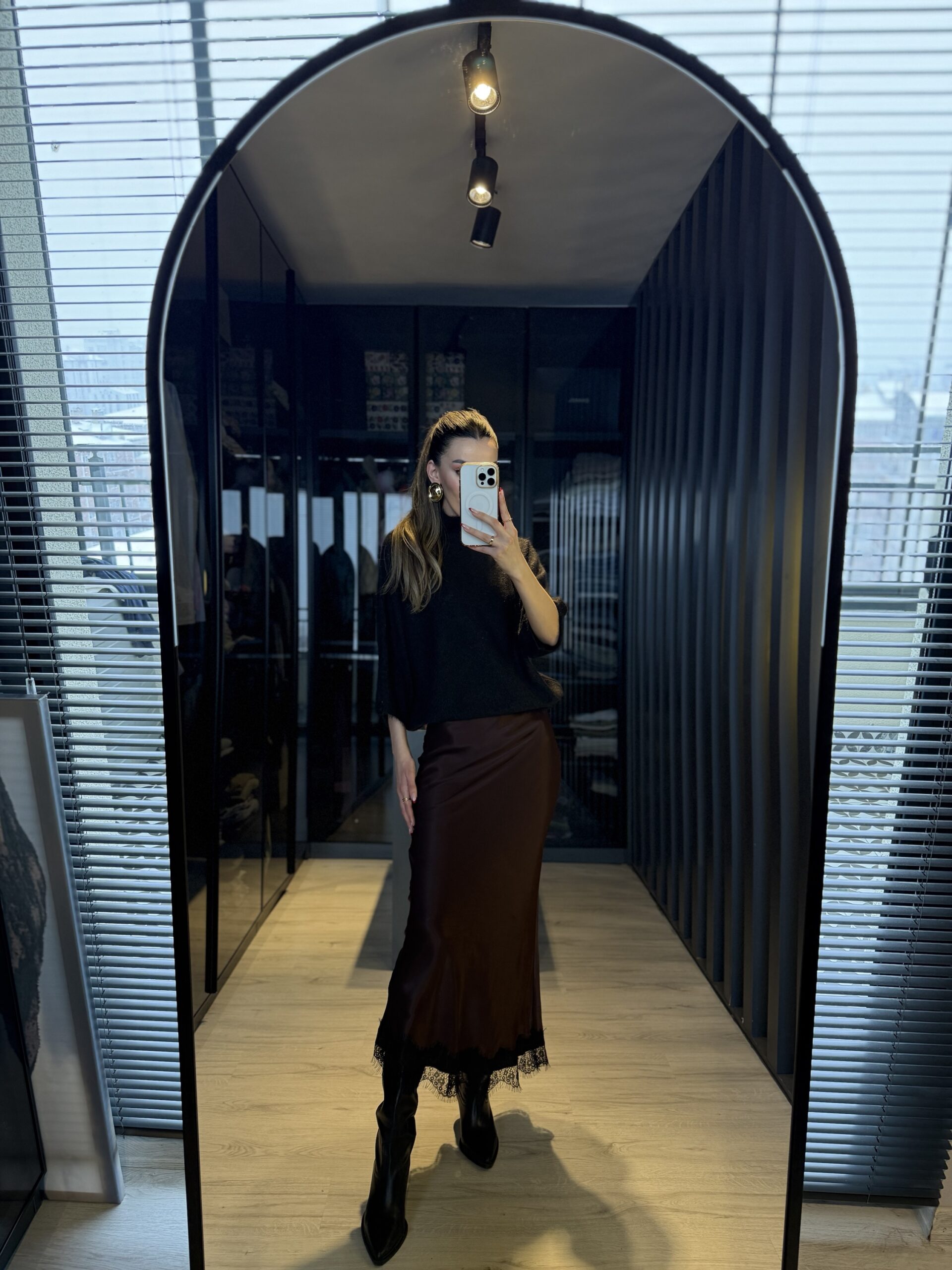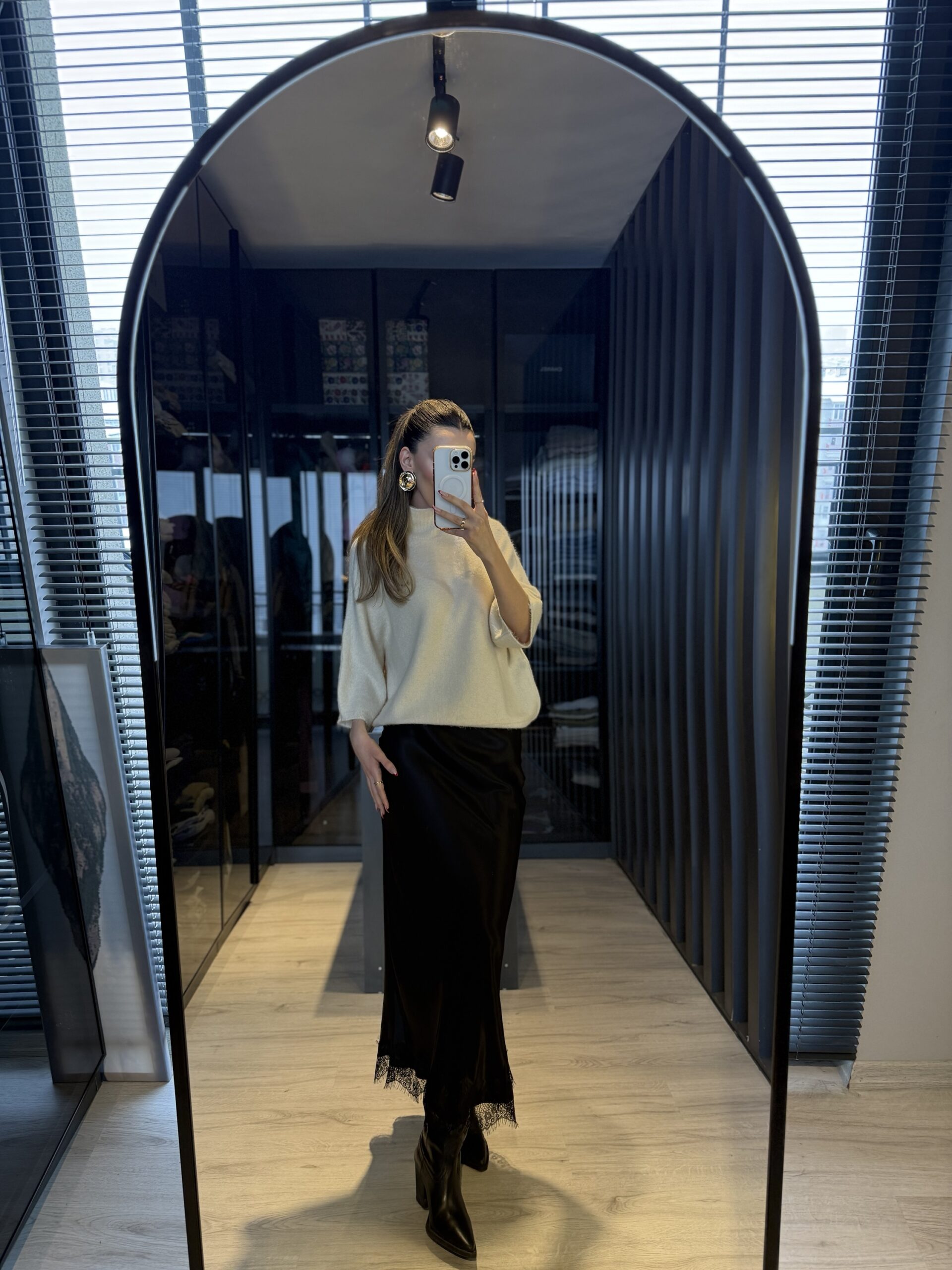 Dantel detay saten midi etek