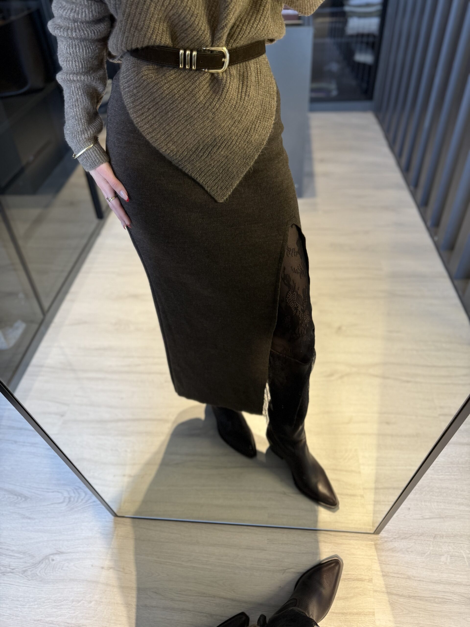 Dantel detay triko etek