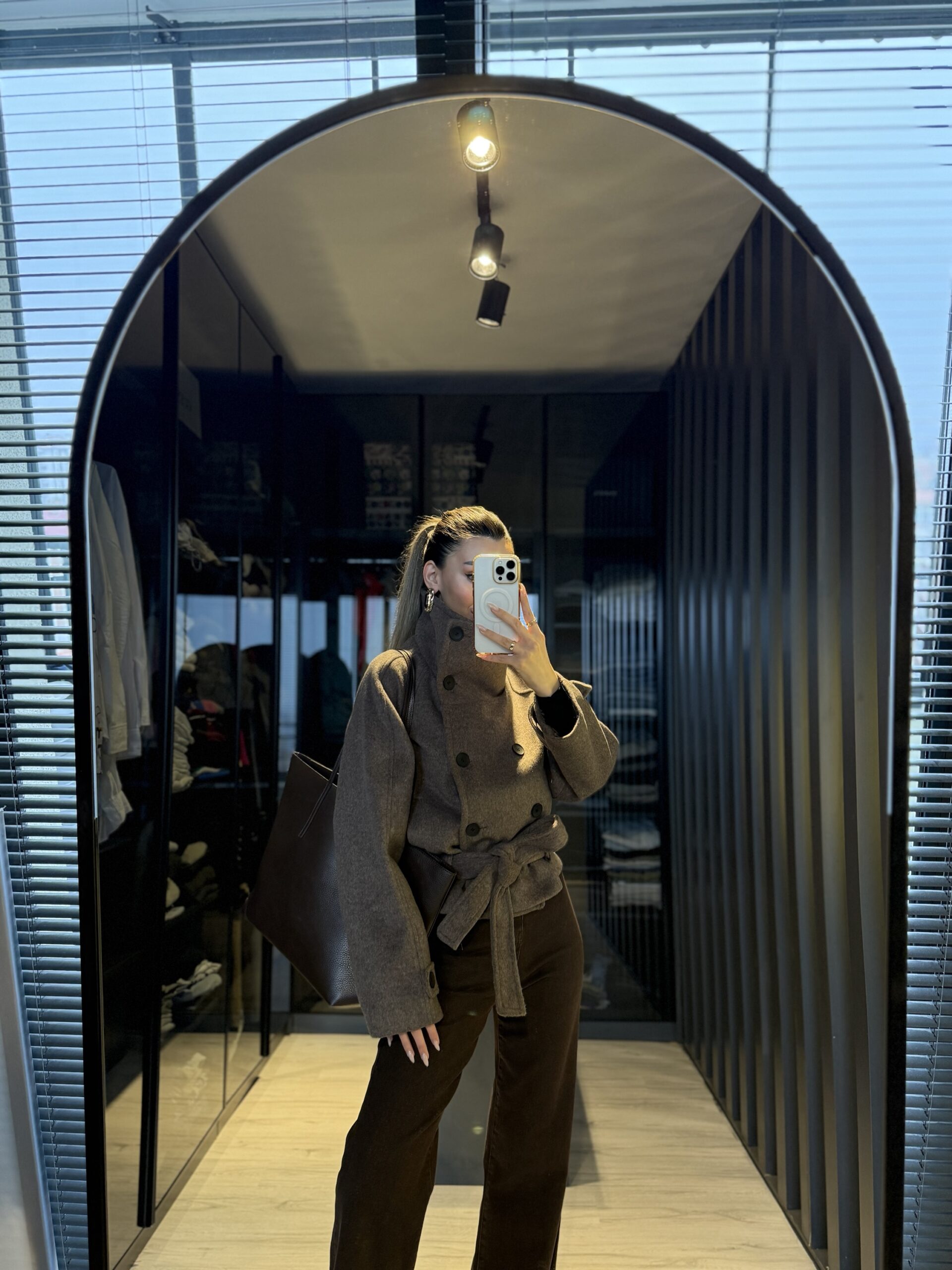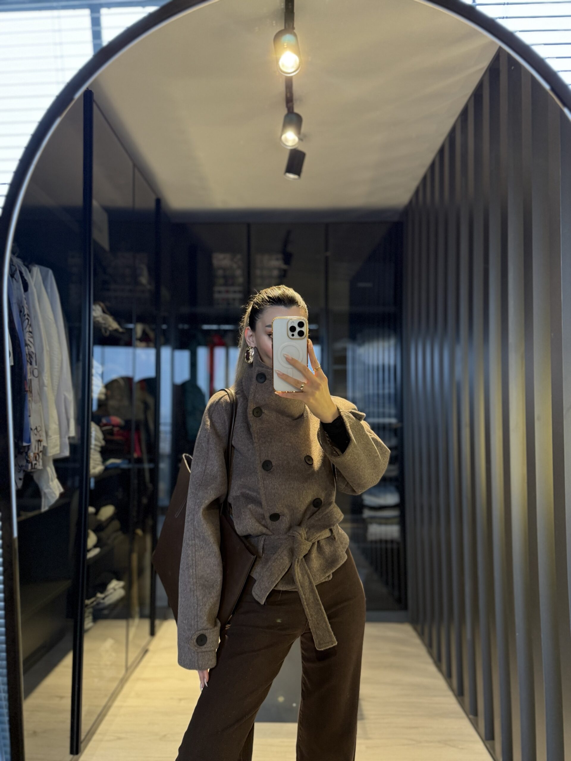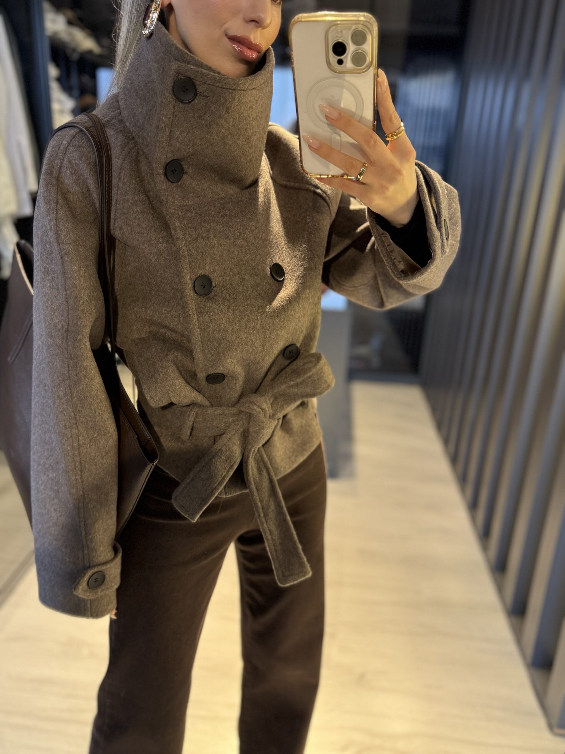 Dik yaka kısa kuşaklı kaşe