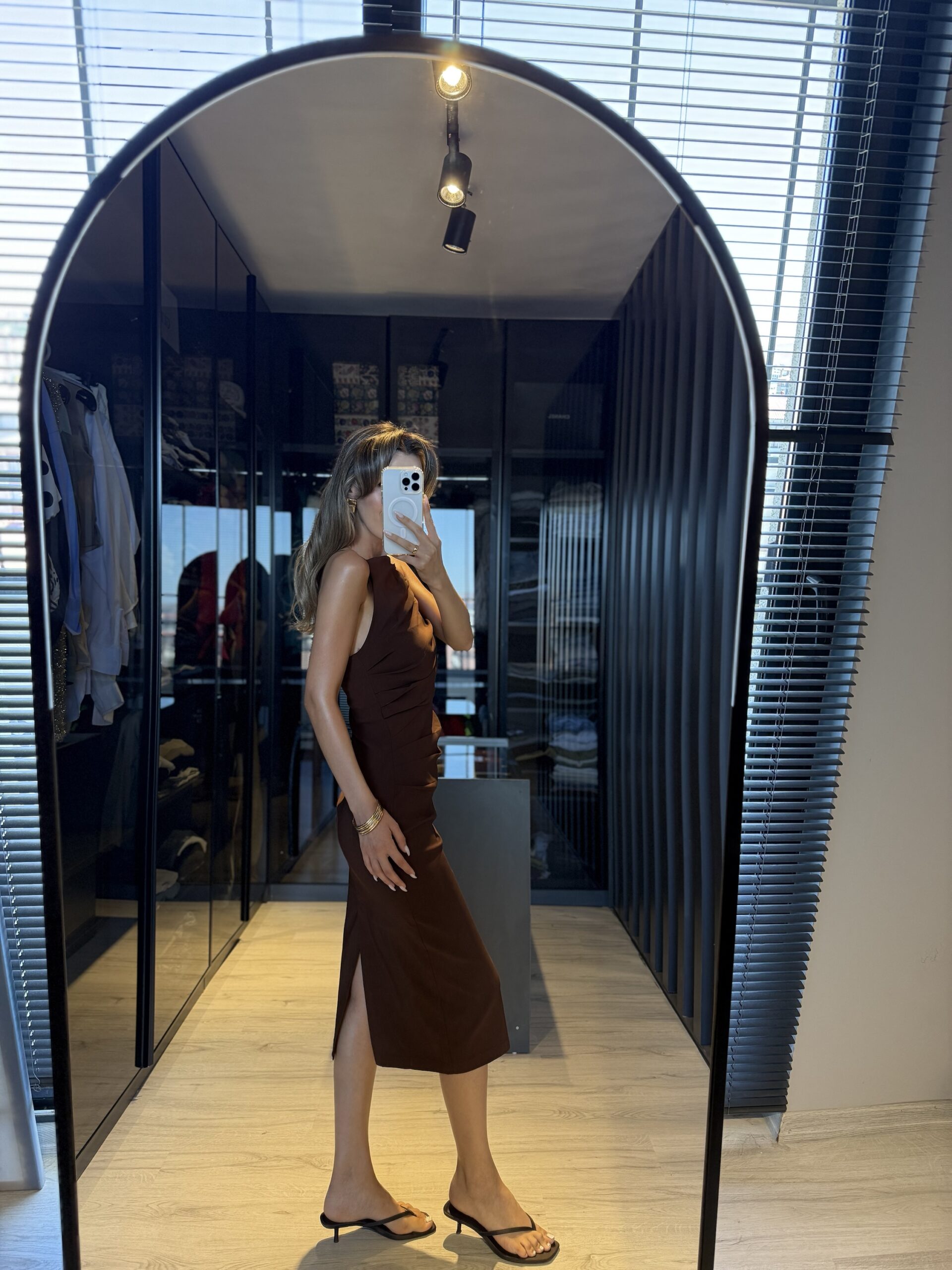 Drapeli midi boy elbise