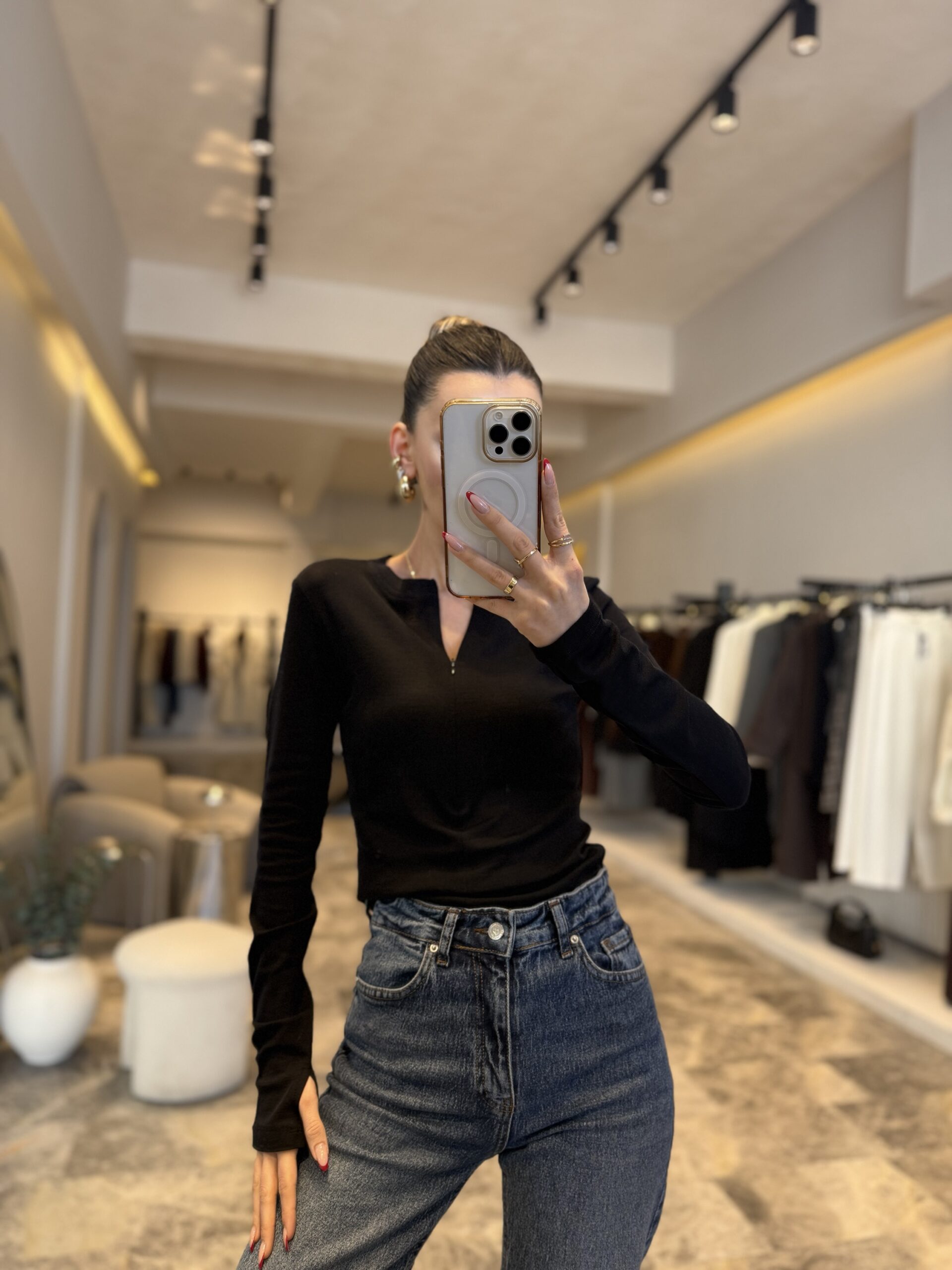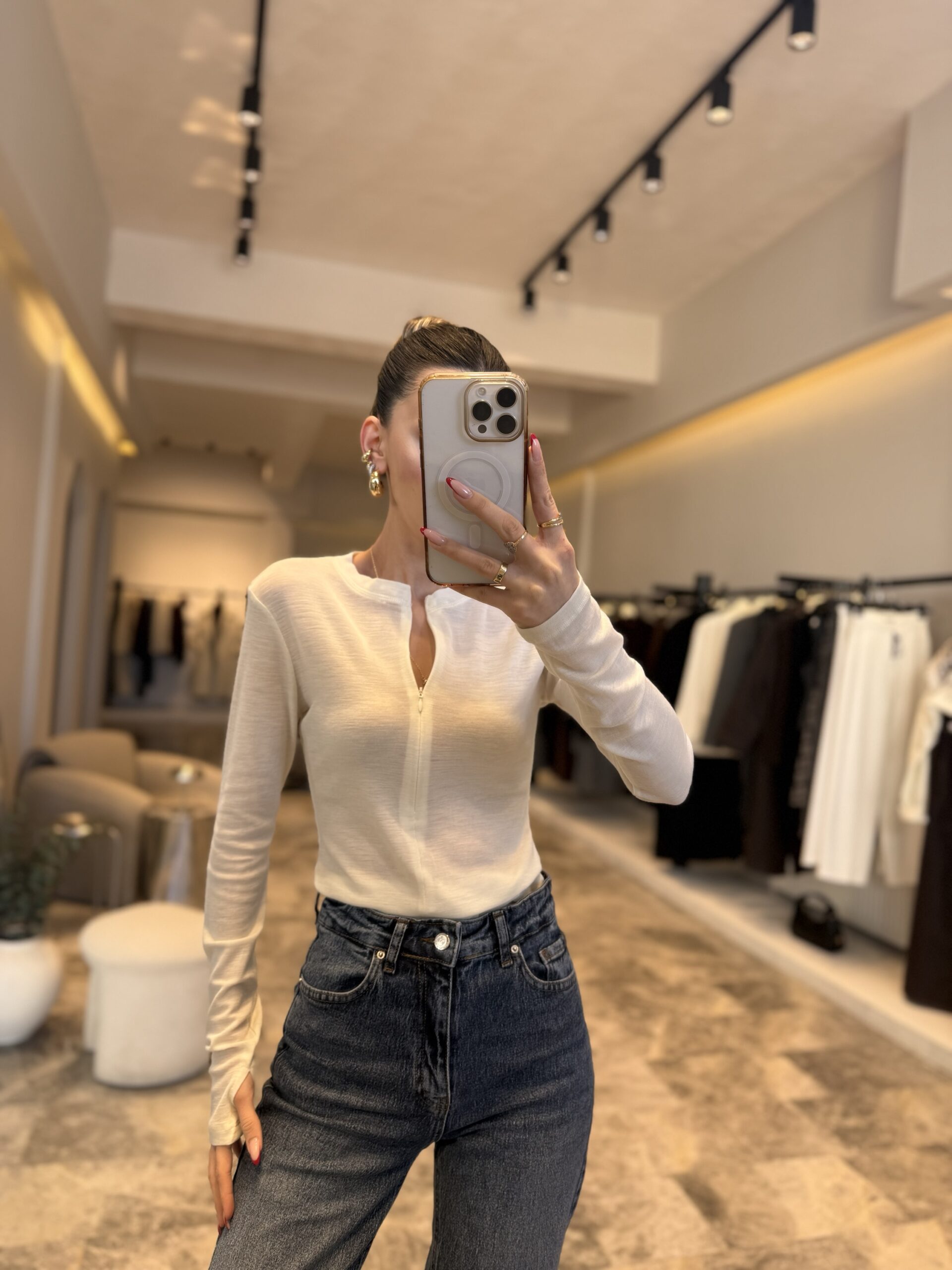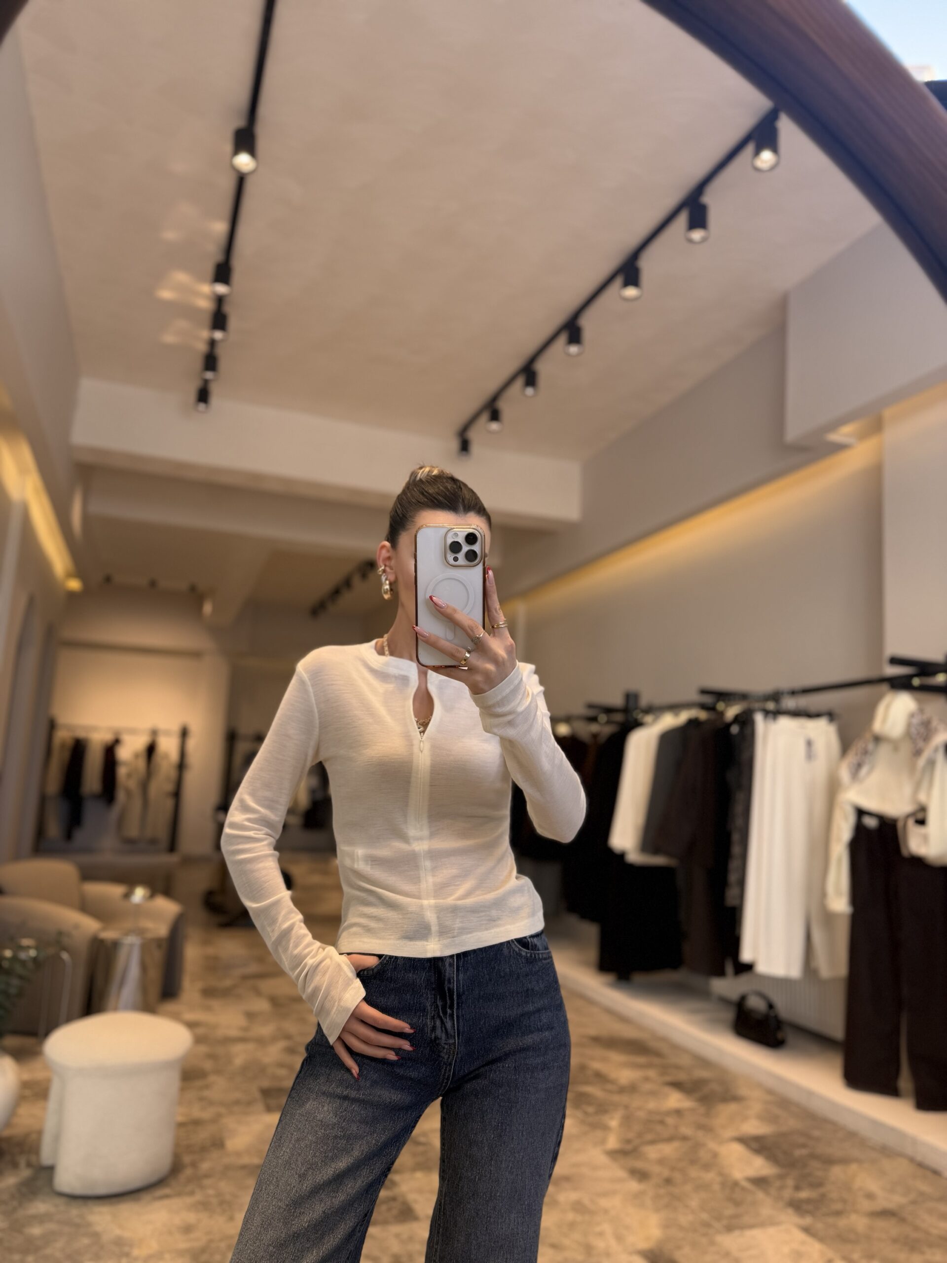 FERMUAR DETAY TRANSPARAN UZUN KOL TOP