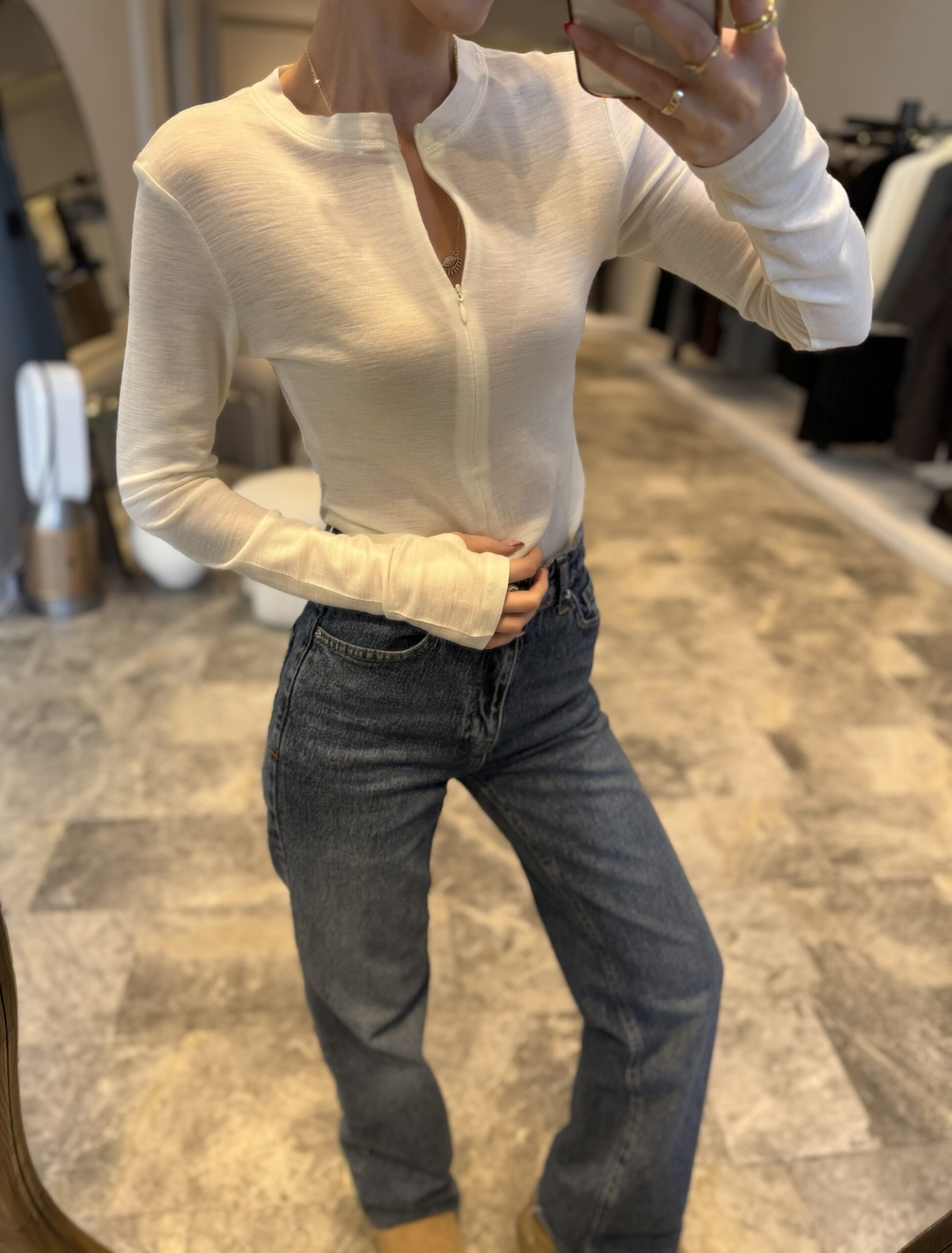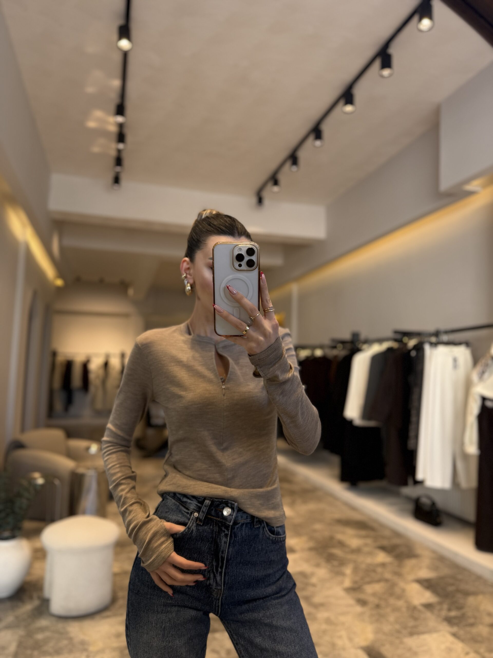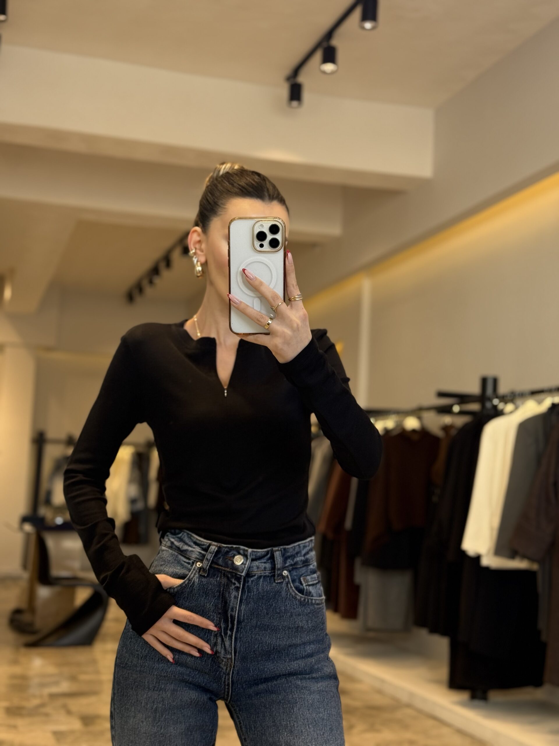 FERMUAR DETAY TRANSPARAN UZUN KOL TOP