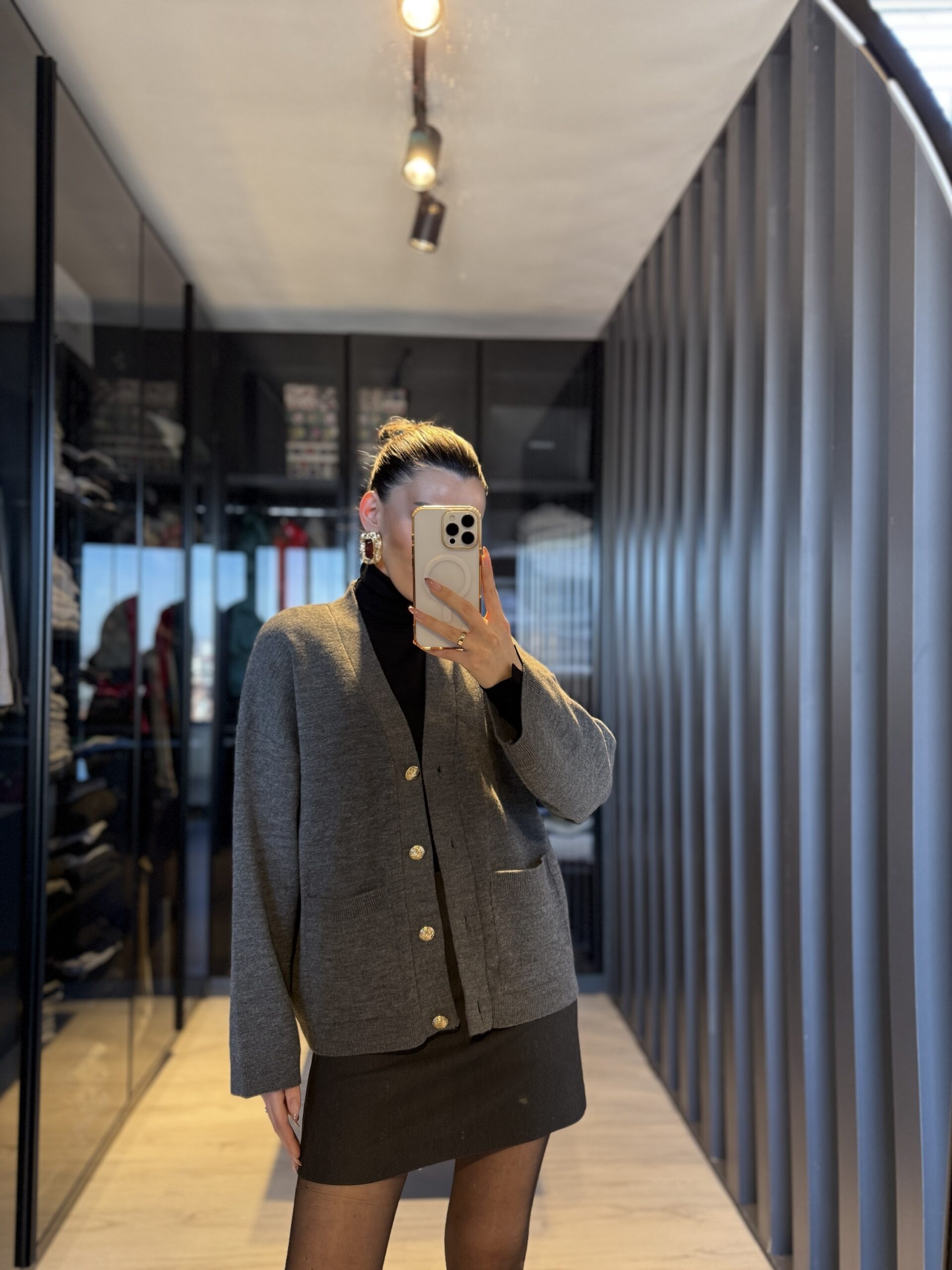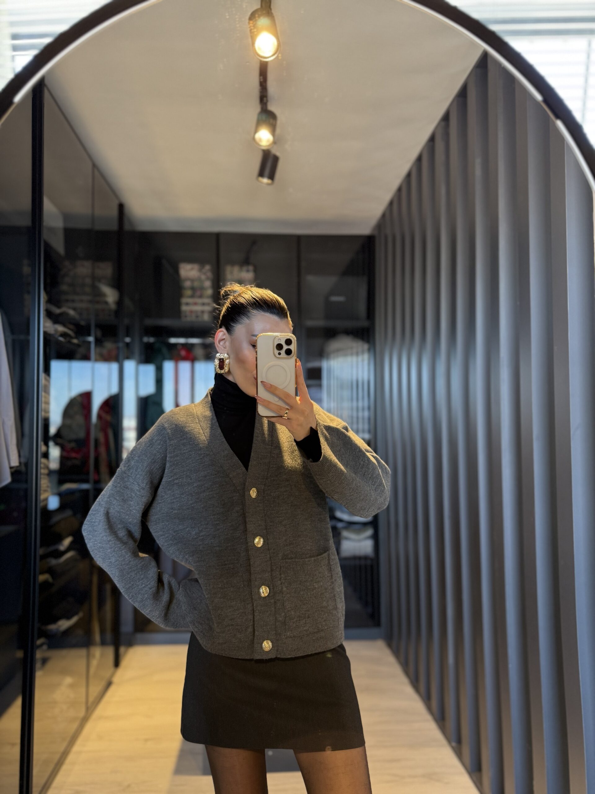 Gold düğme detay hırka
