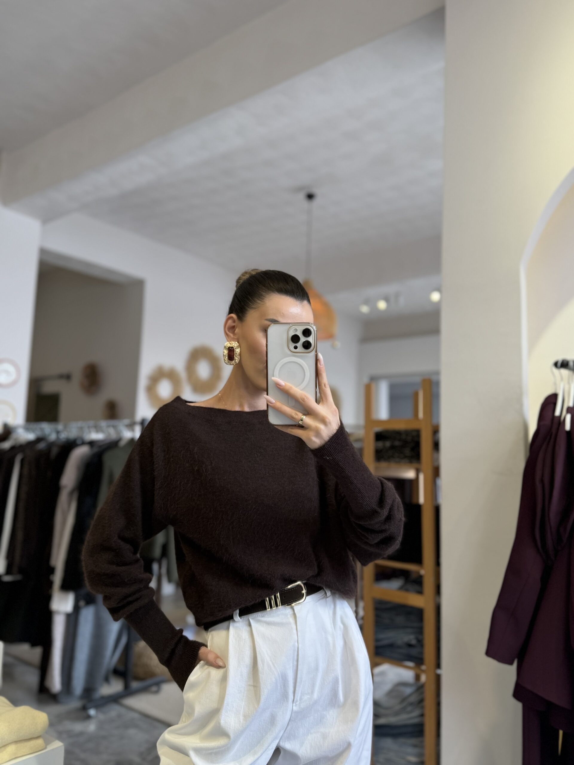 Kayık yaka yumuşak dokulu kazak
