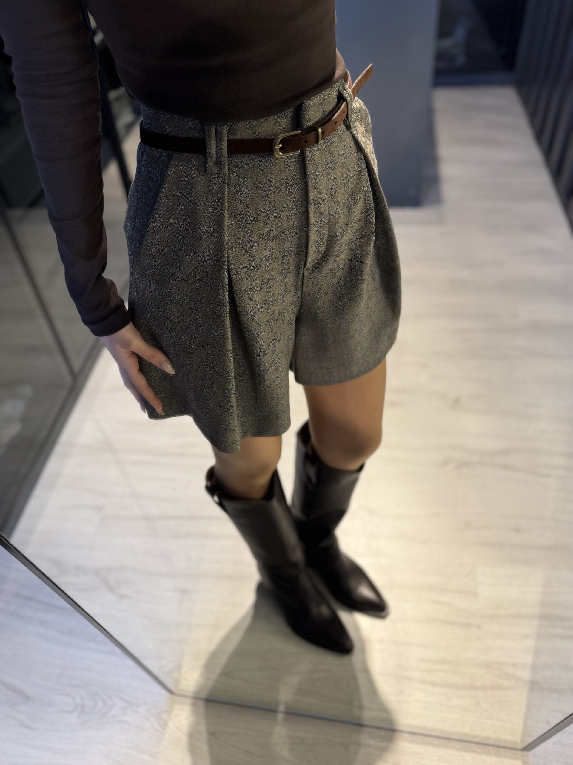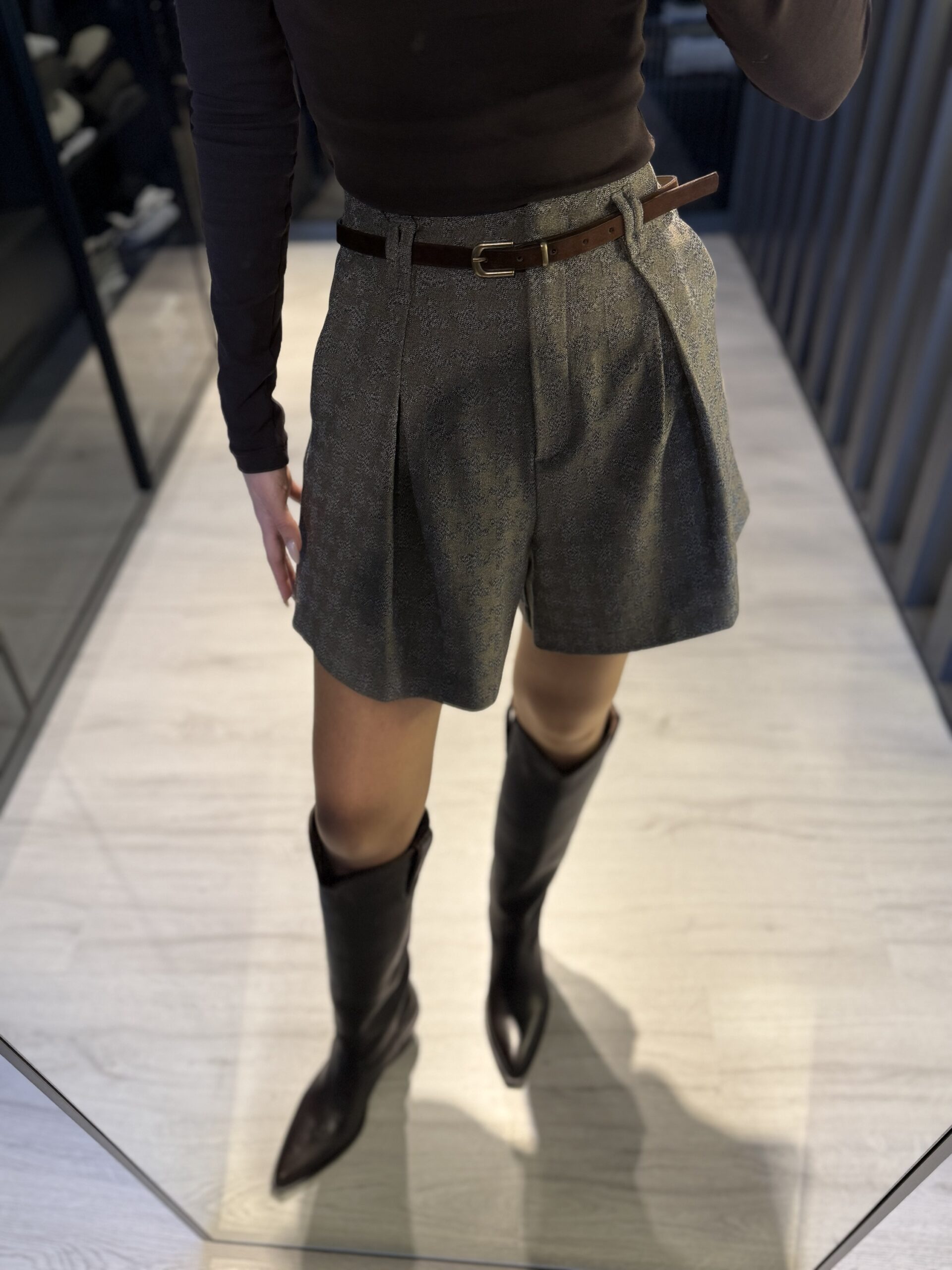 Kemerli desenli şort