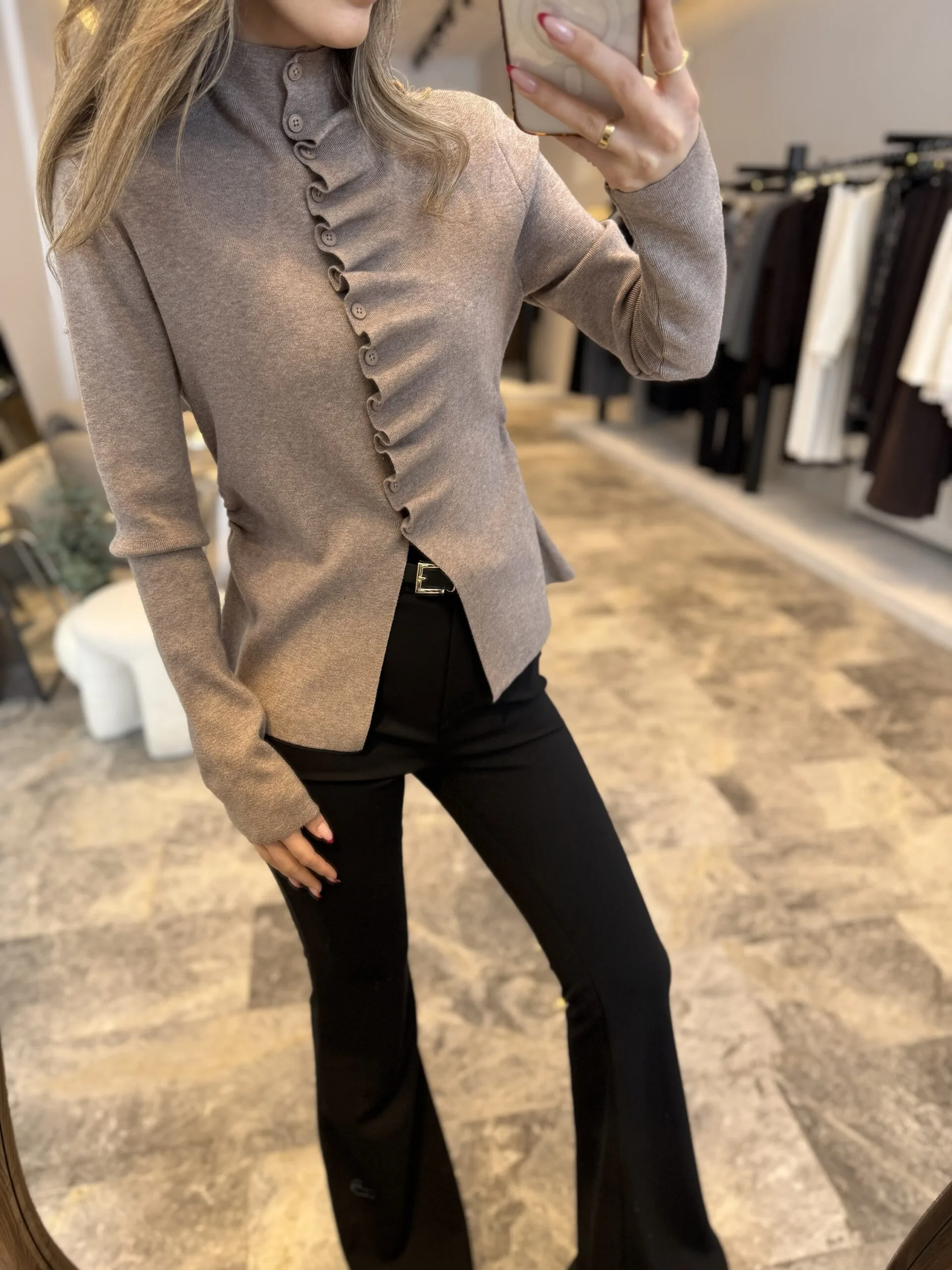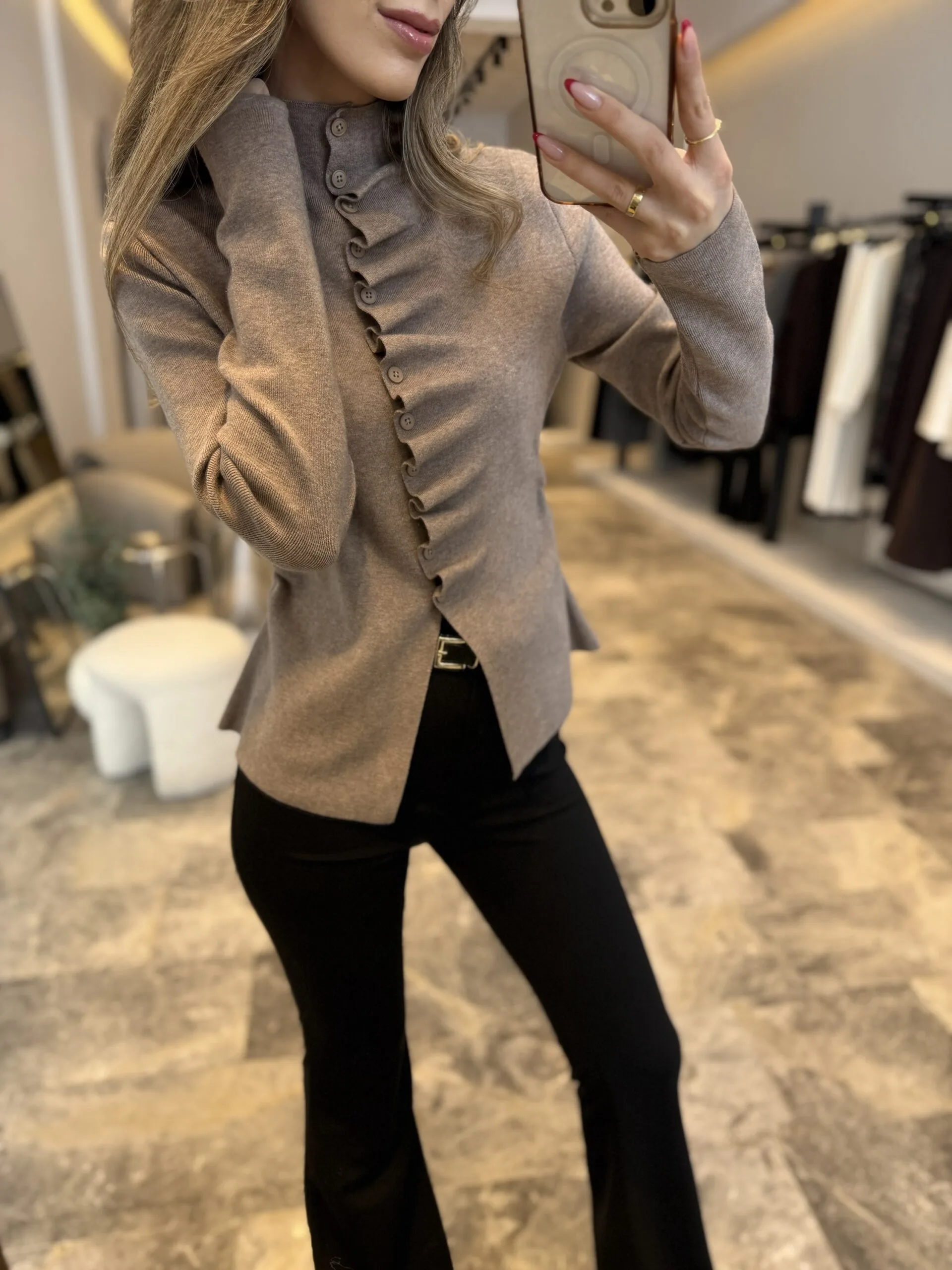“Kendinden büzgülü dik yaka kazak” için yorum yapan ilk kişi siz olun