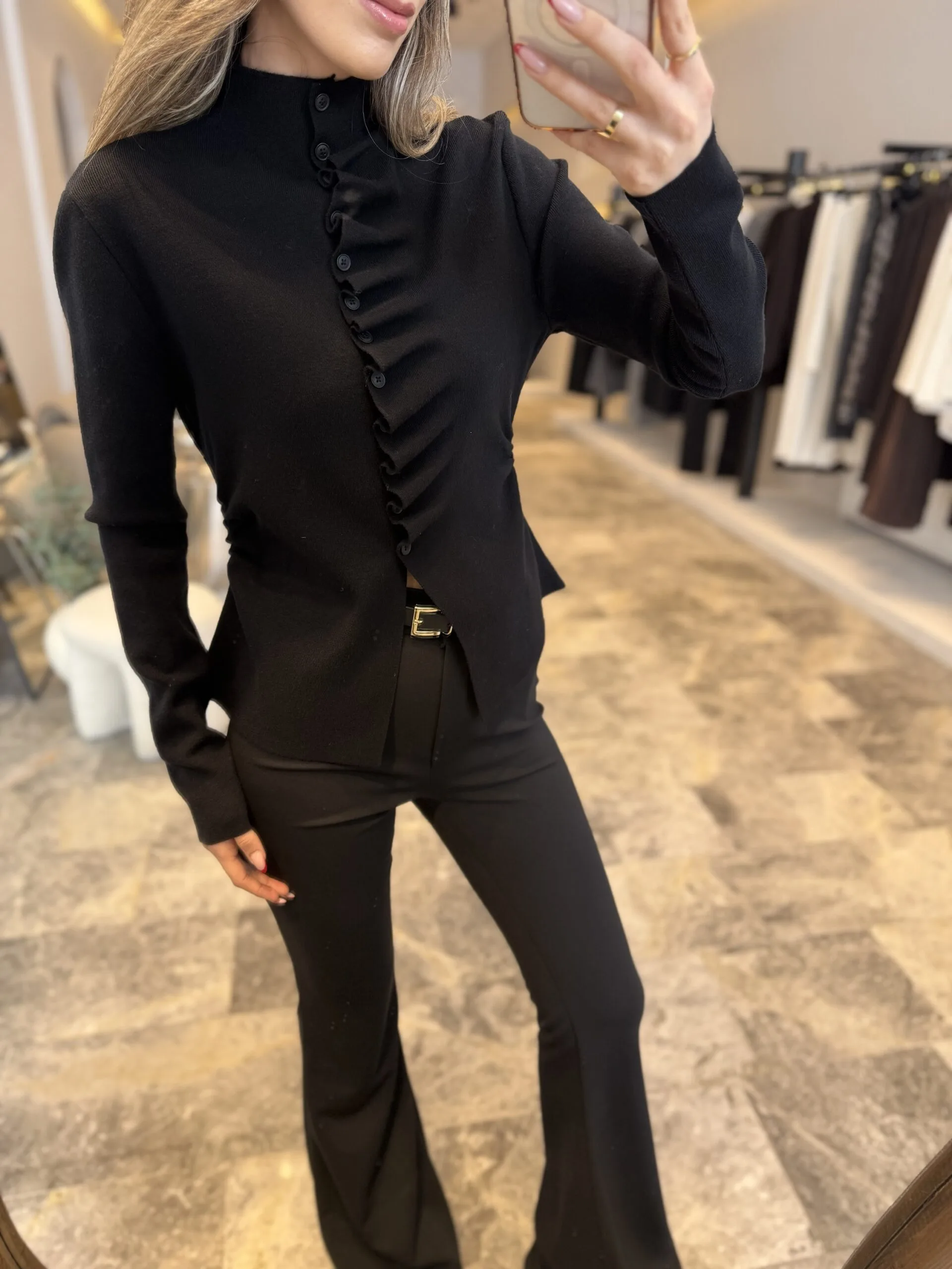 Kendinden büzgülü dik yaka kazak