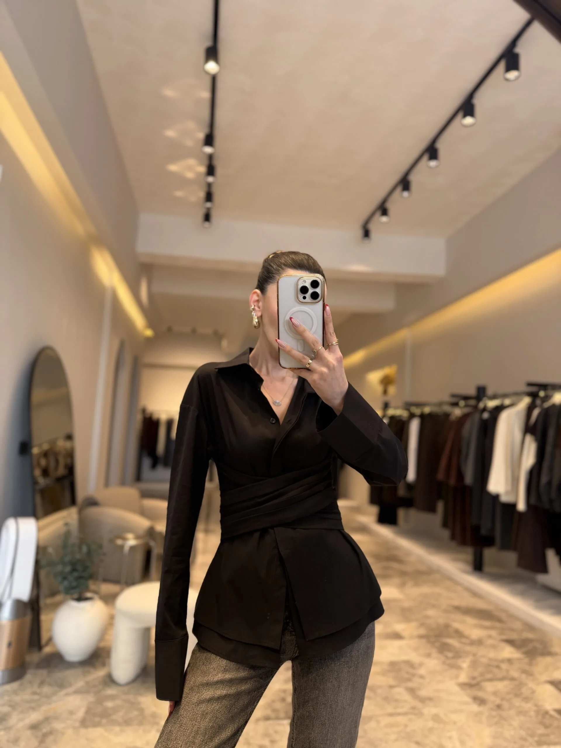 “Kuşak detaylı tasarım gömlek” için yorum yapan ilk kişi siz olun