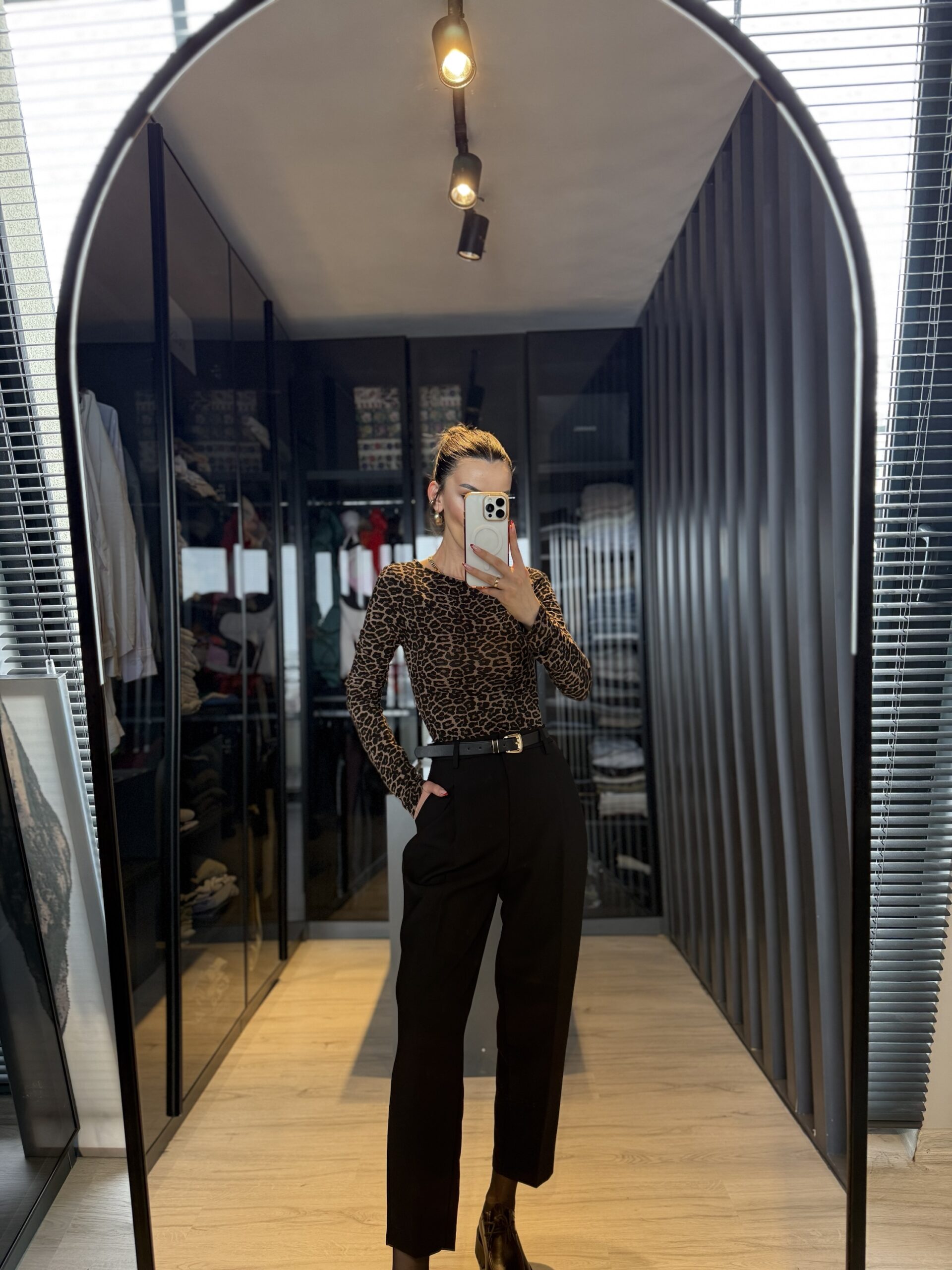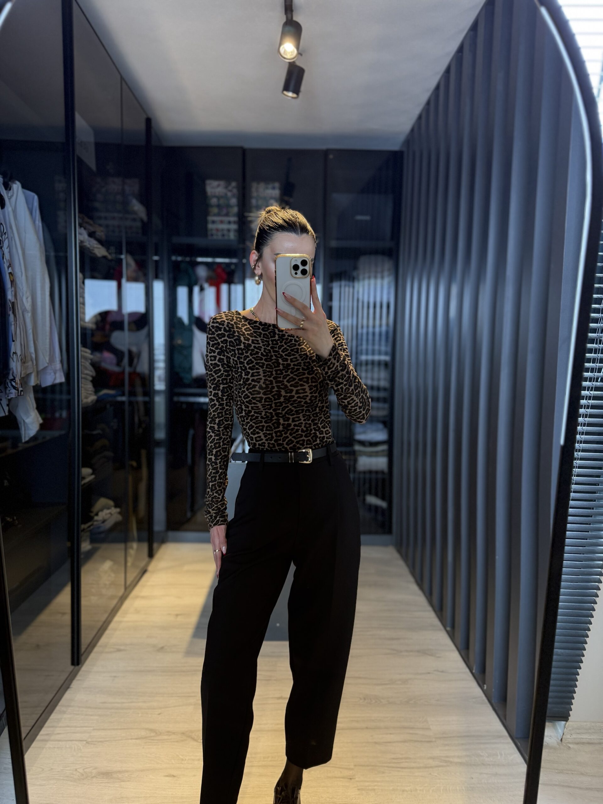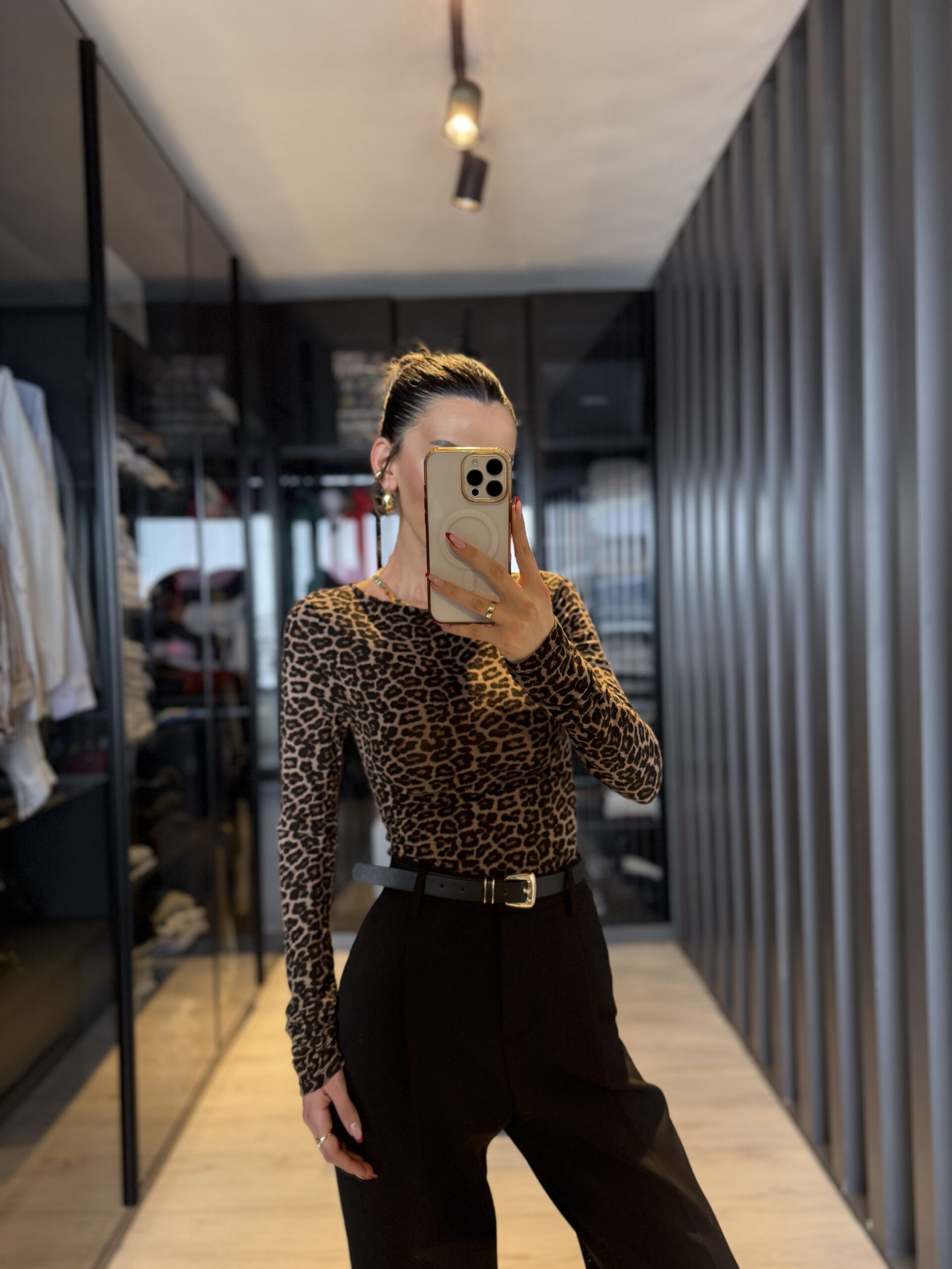 Leopar desen kayık yaka bluz