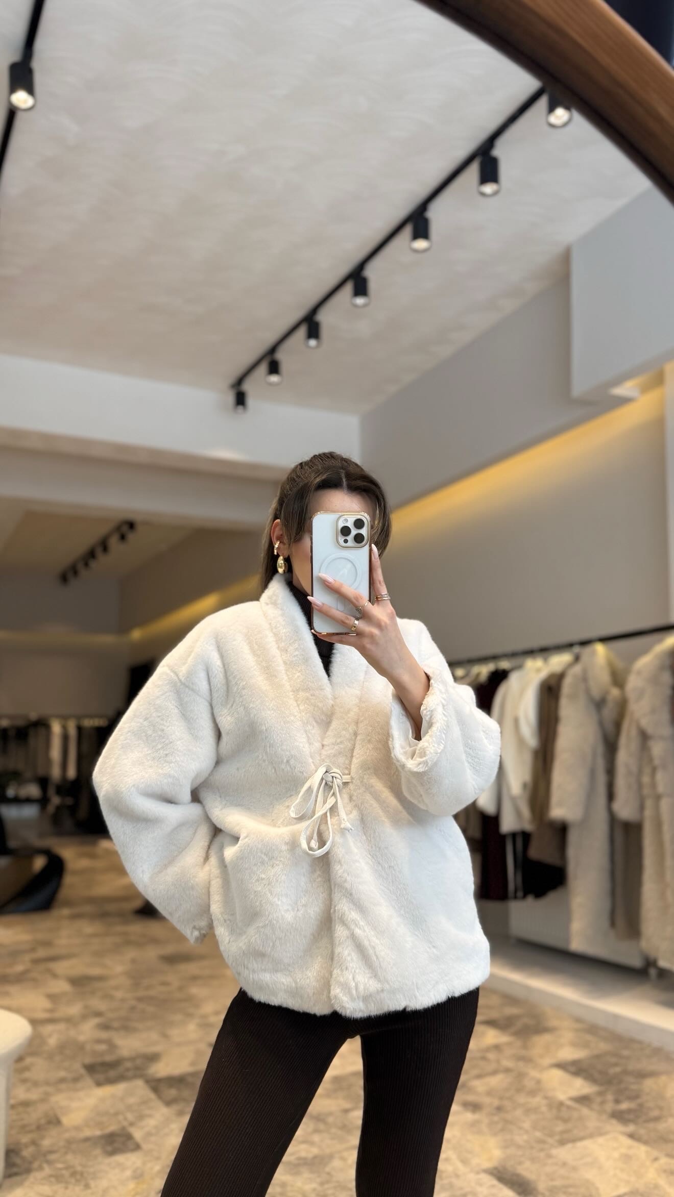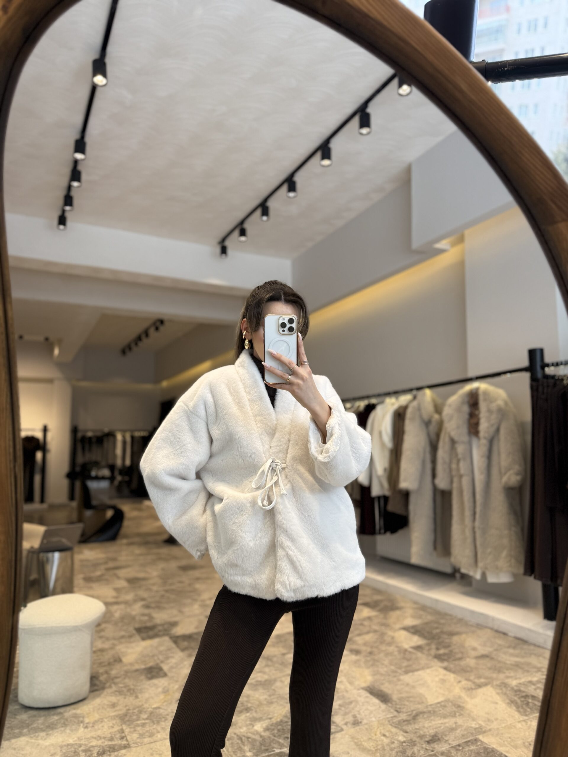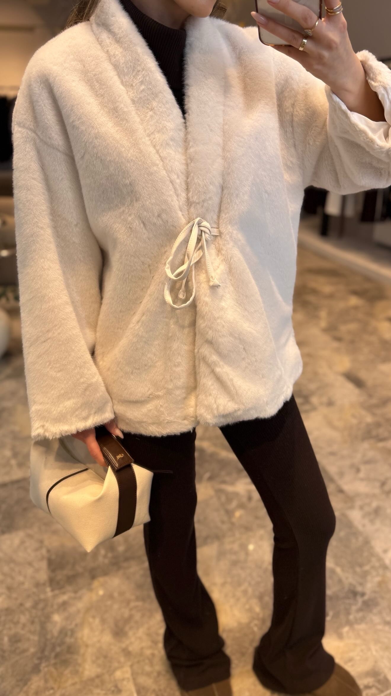 Önden bağlamalı peluş ceket