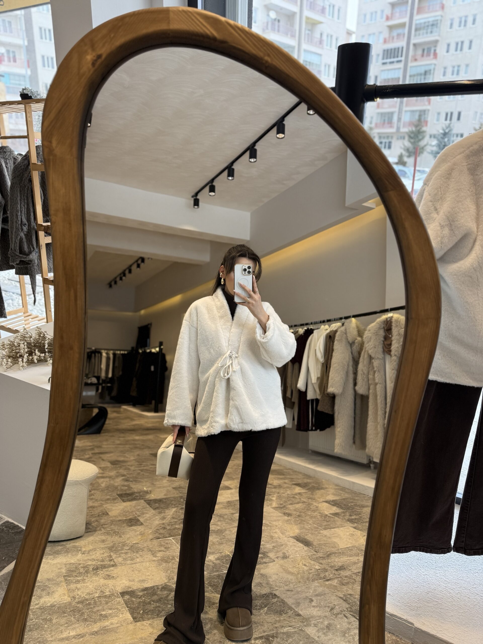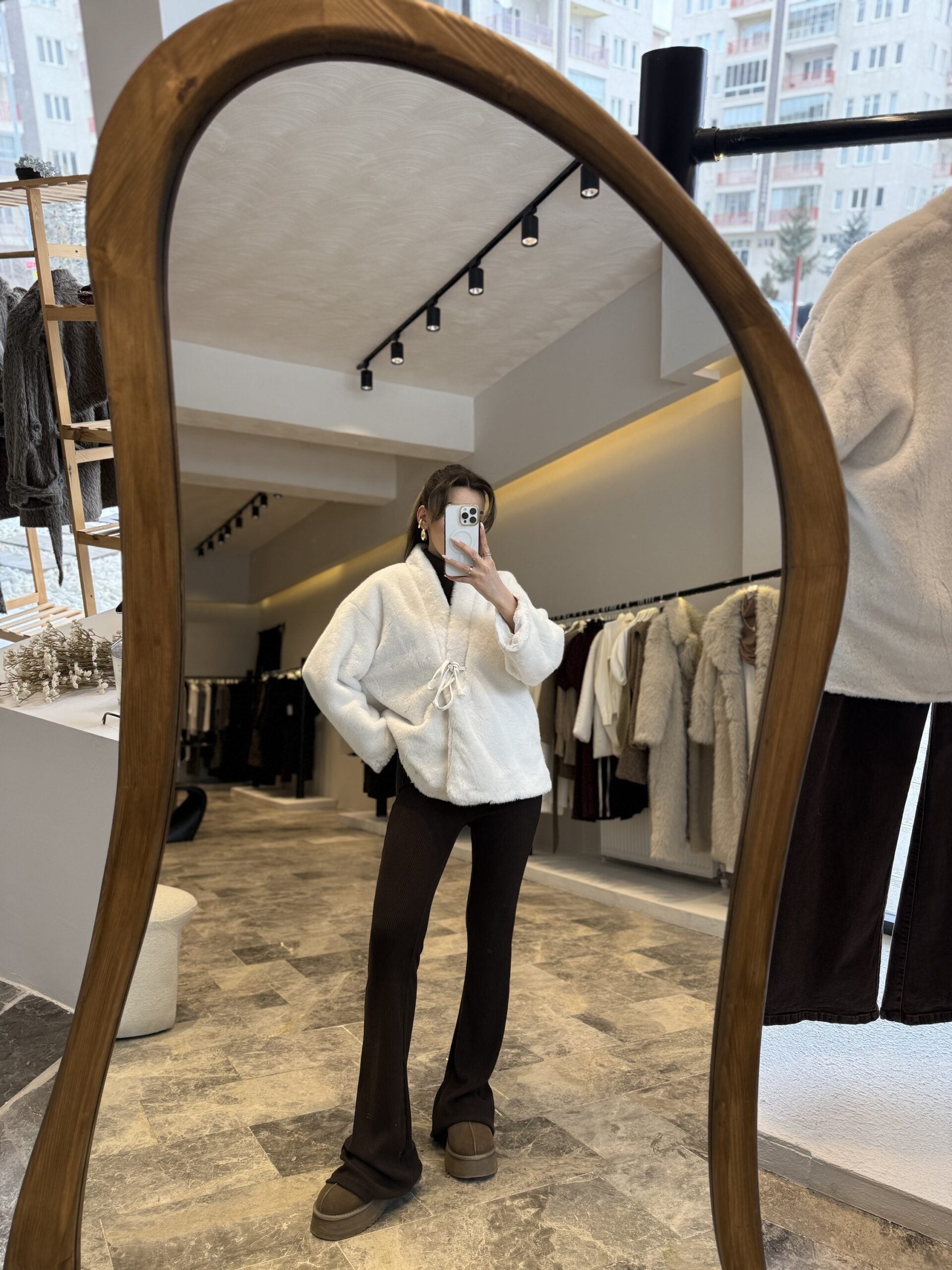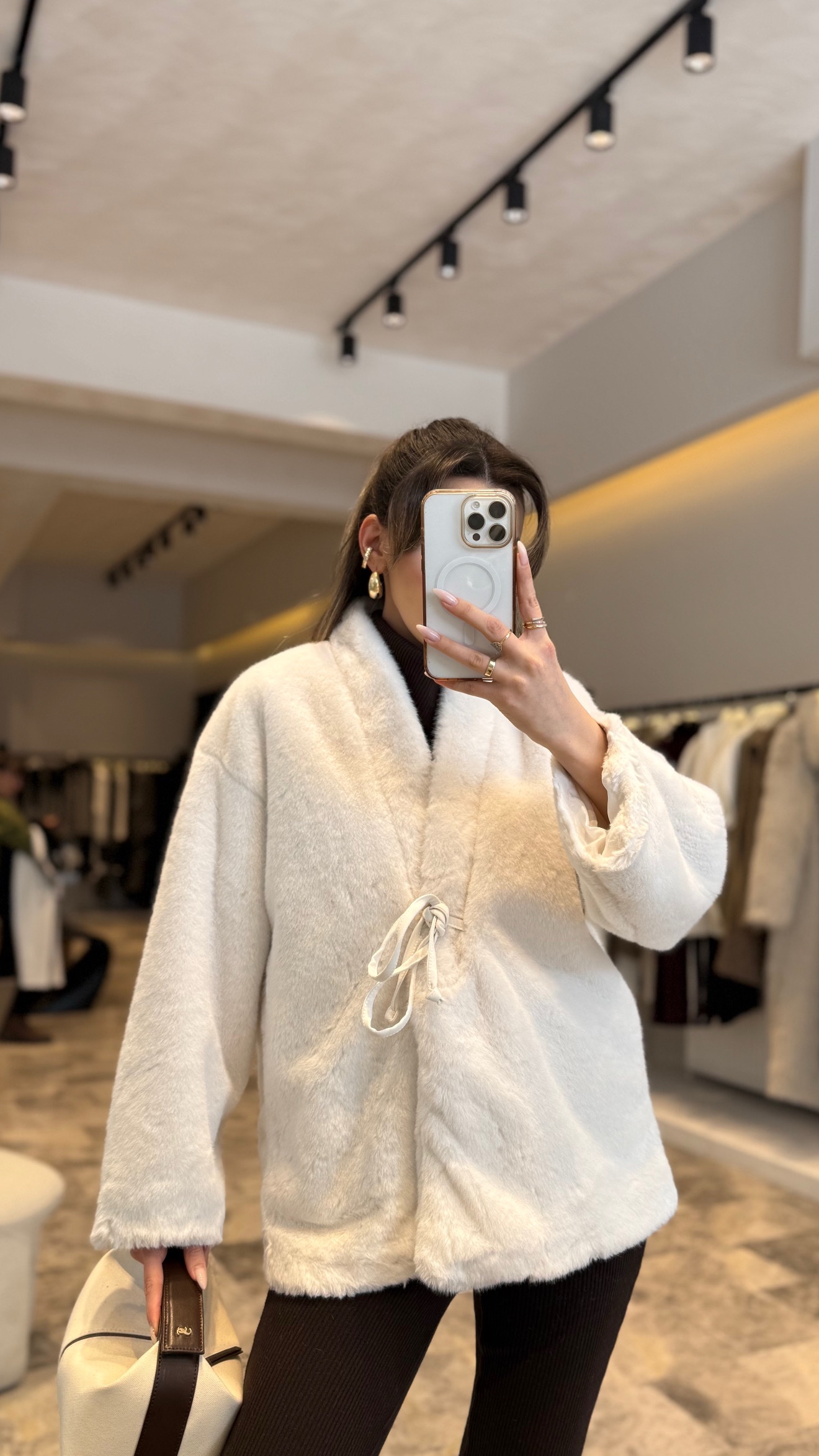 Önden bağlamalı peluş ceket