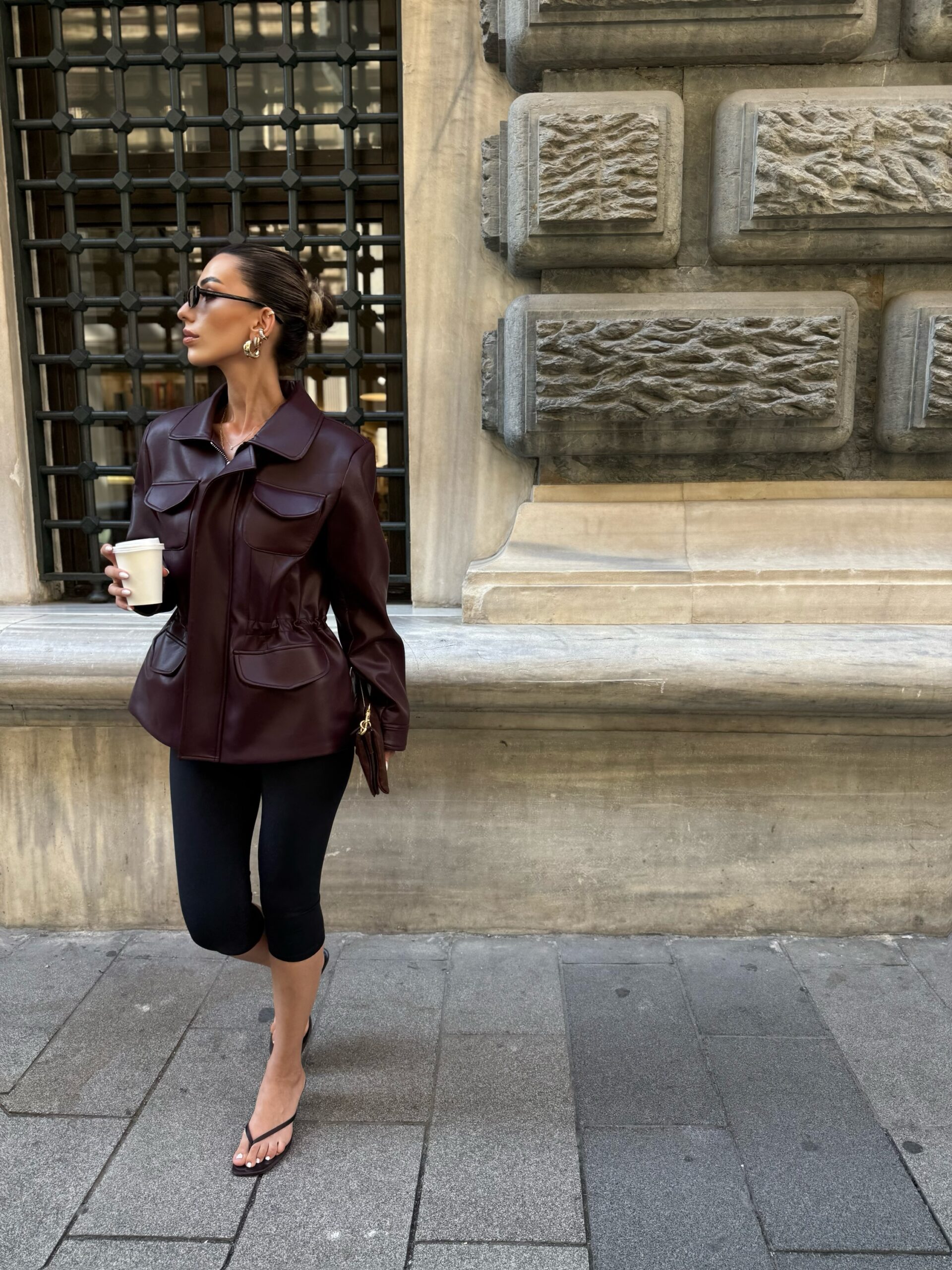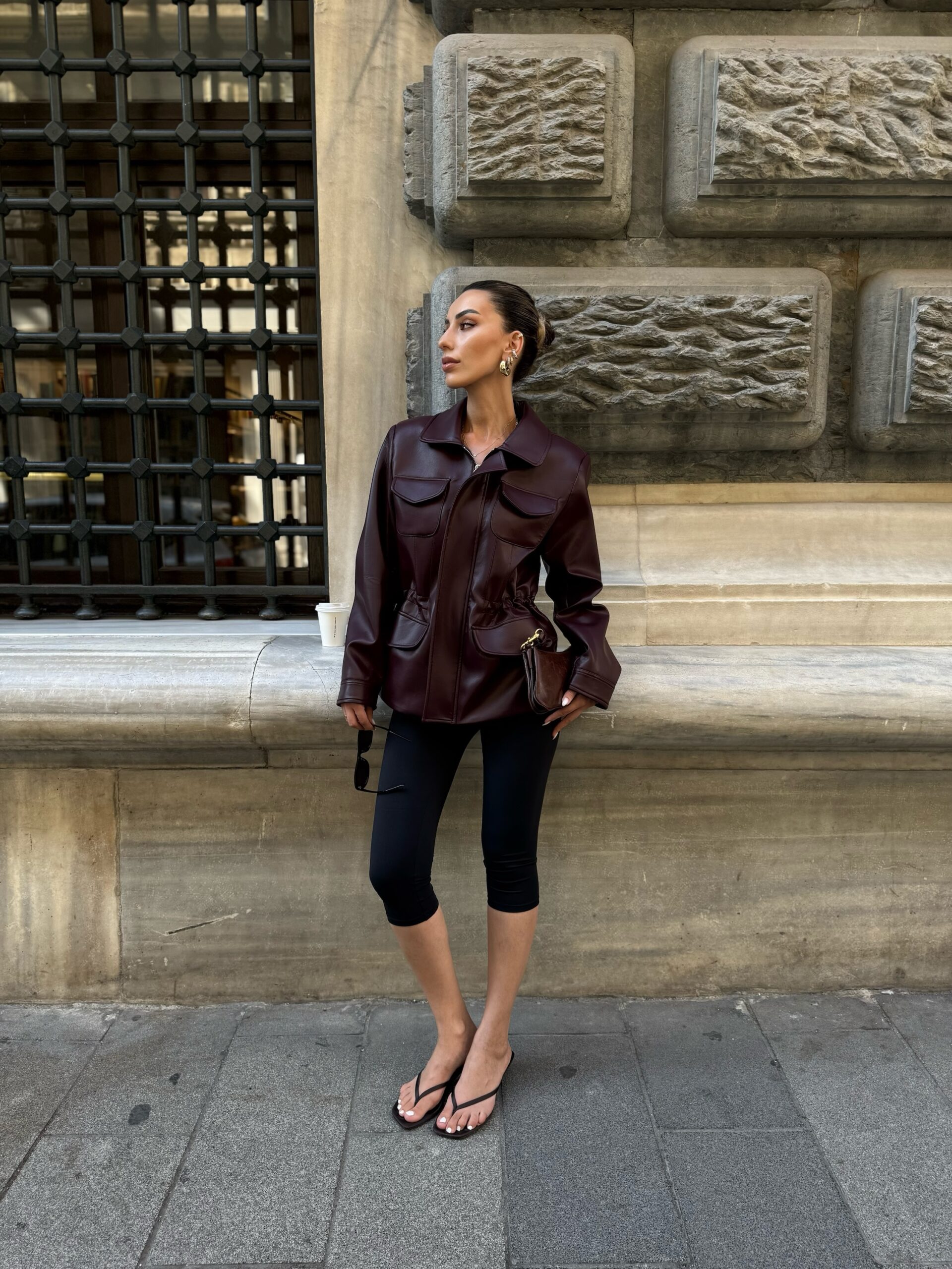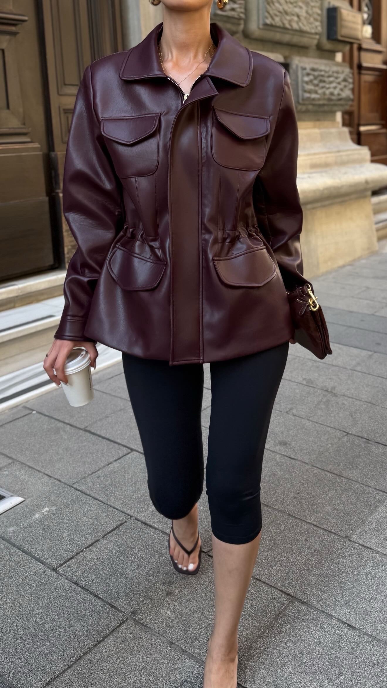 Premium büzgü detay deri ceket