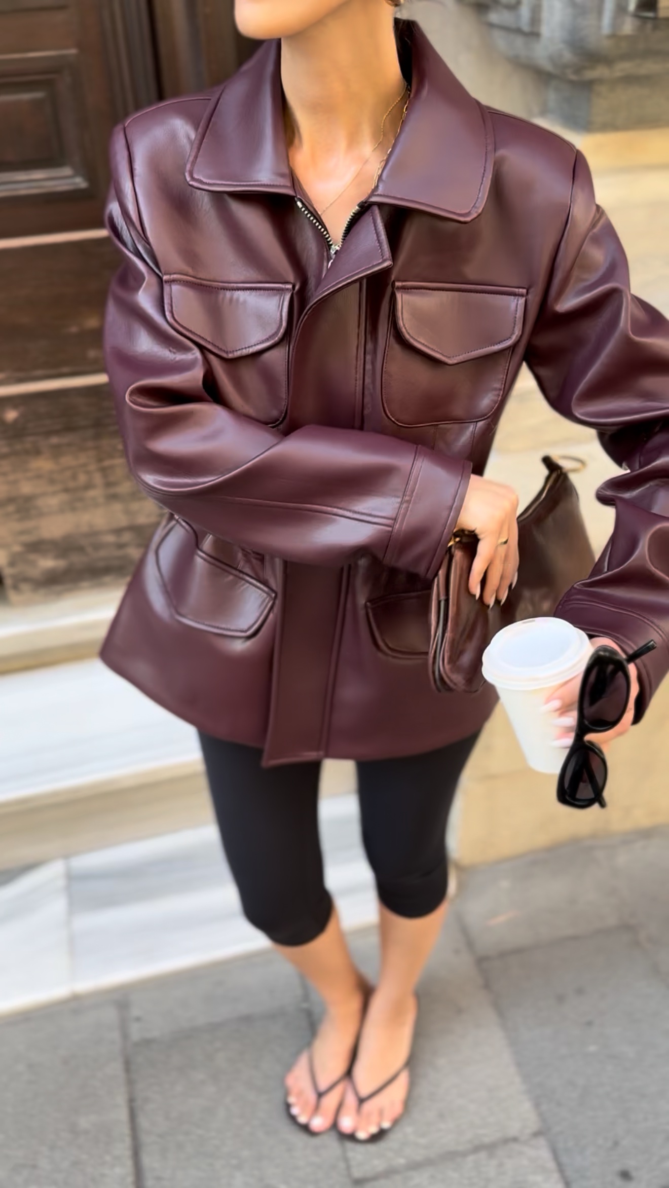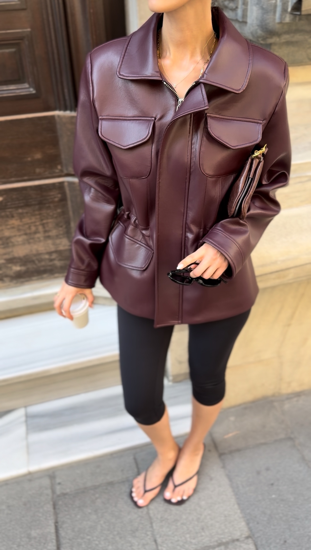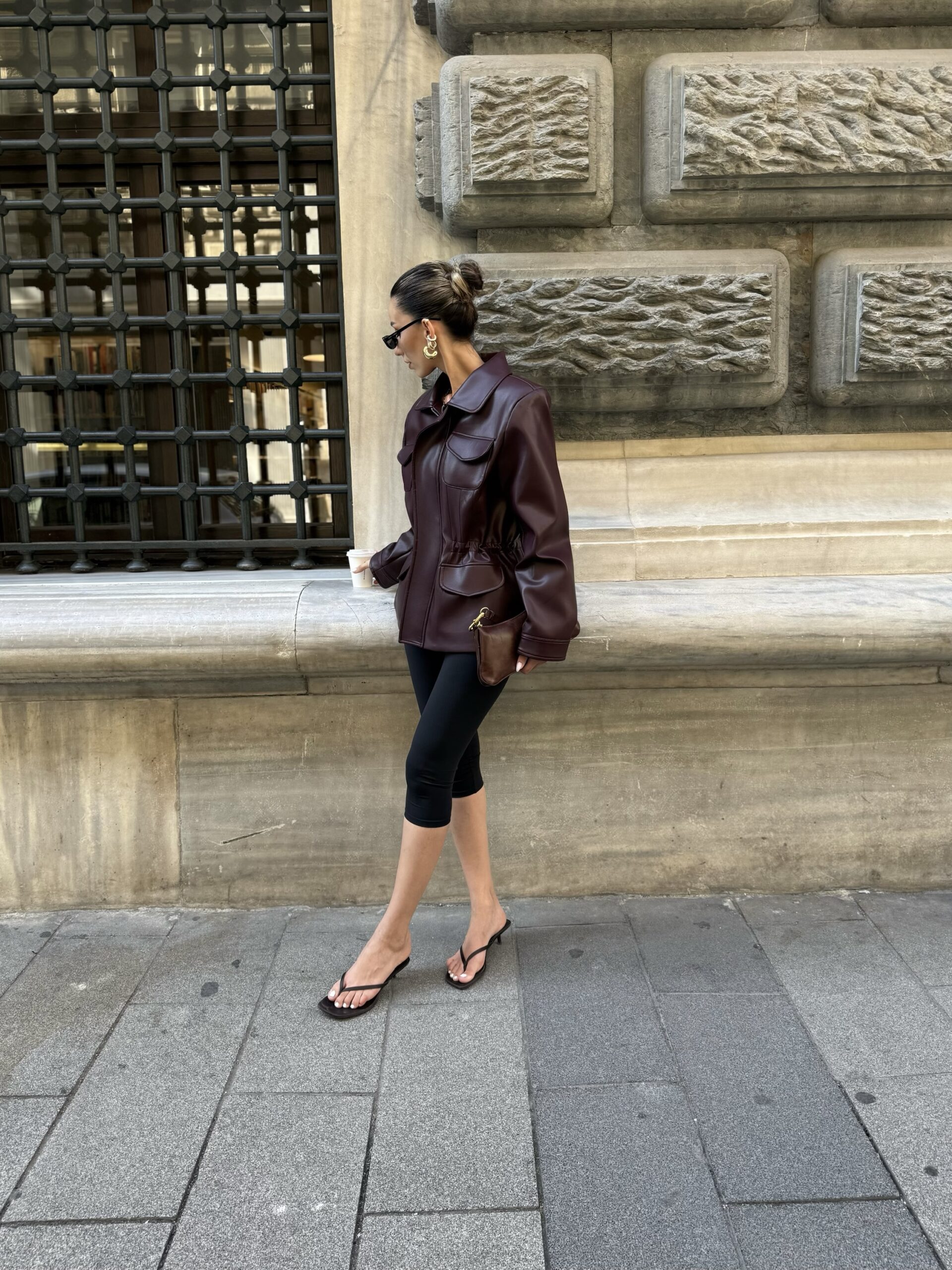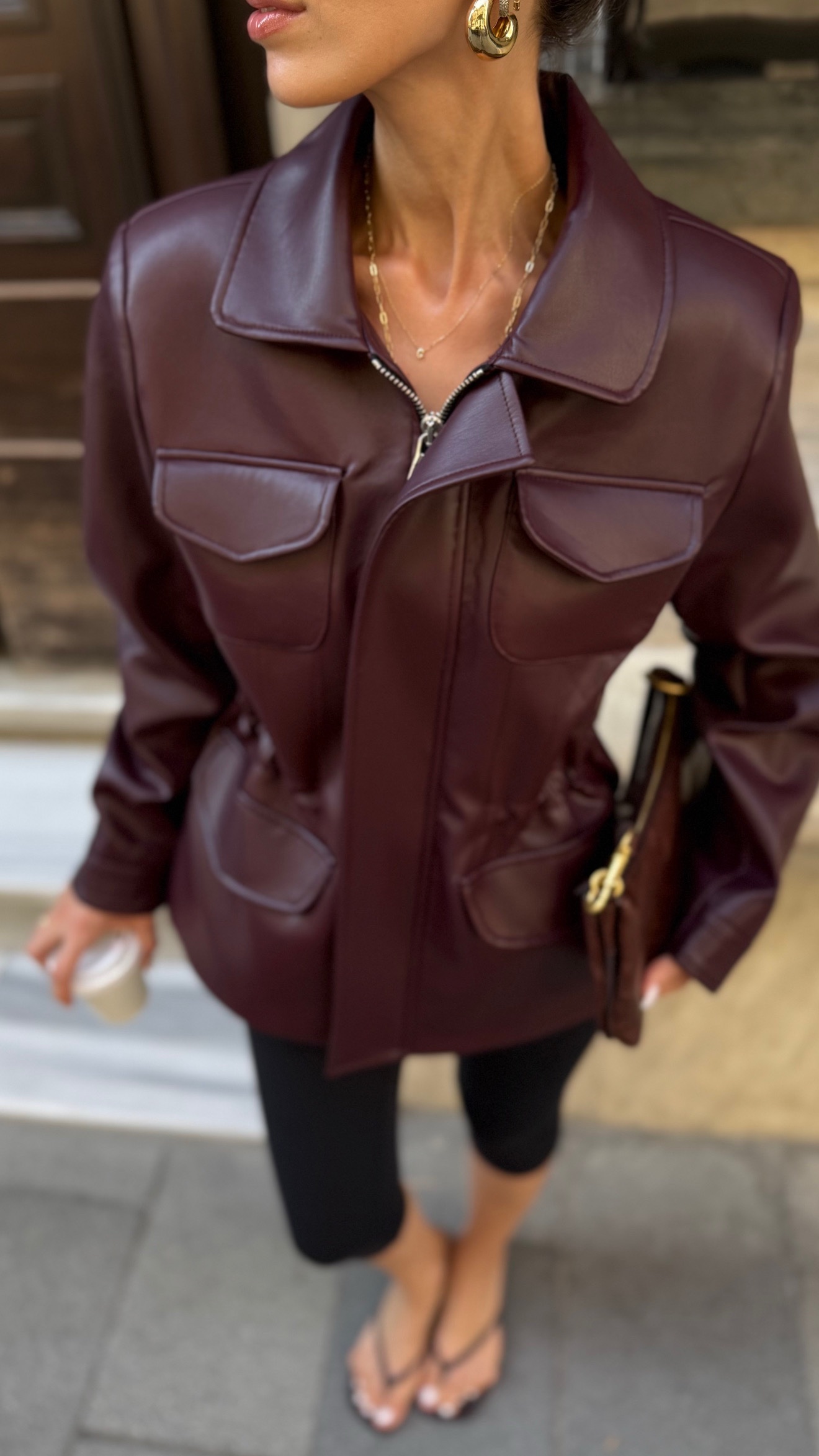 Premium büzgü detay deri ceket