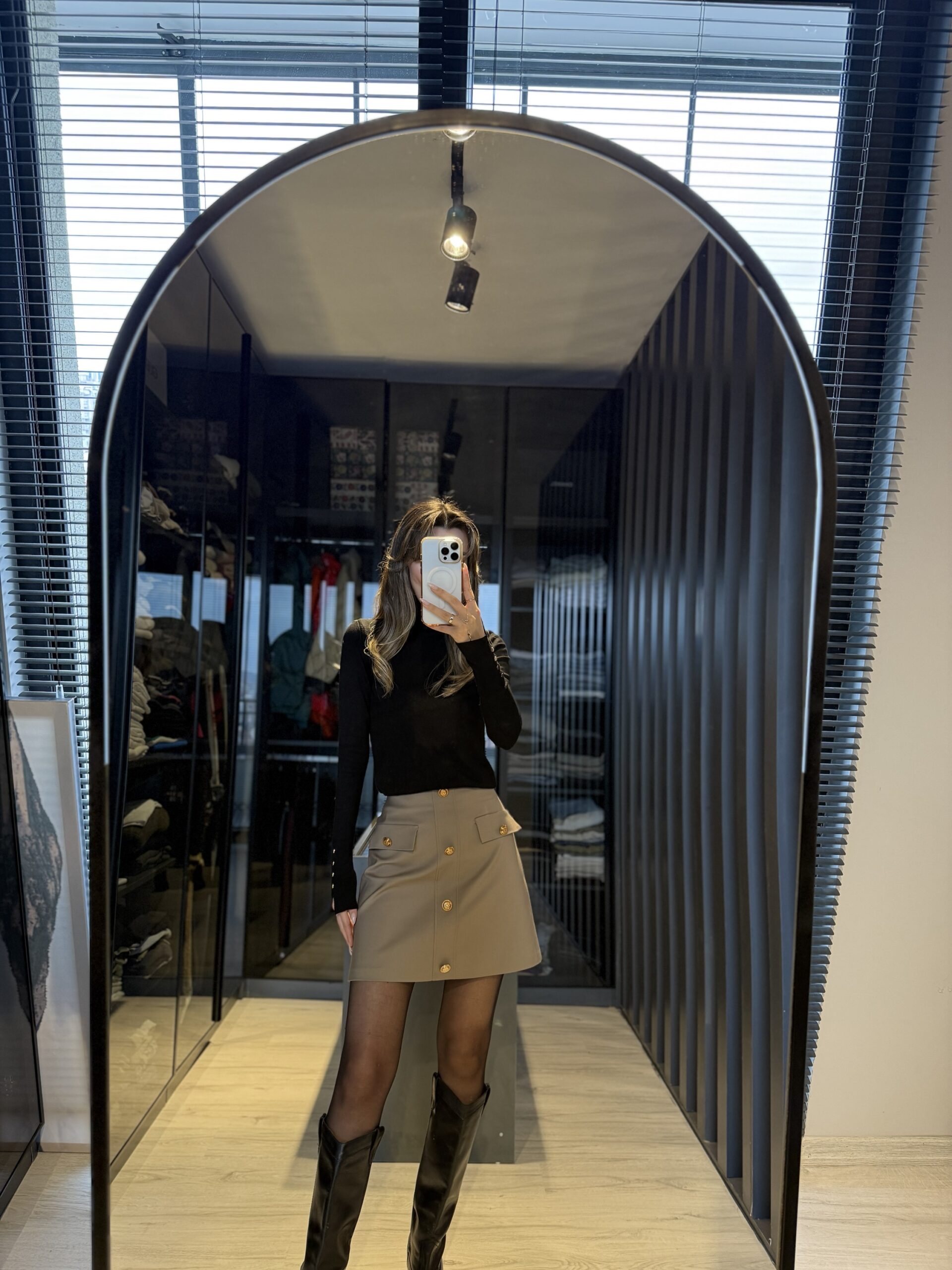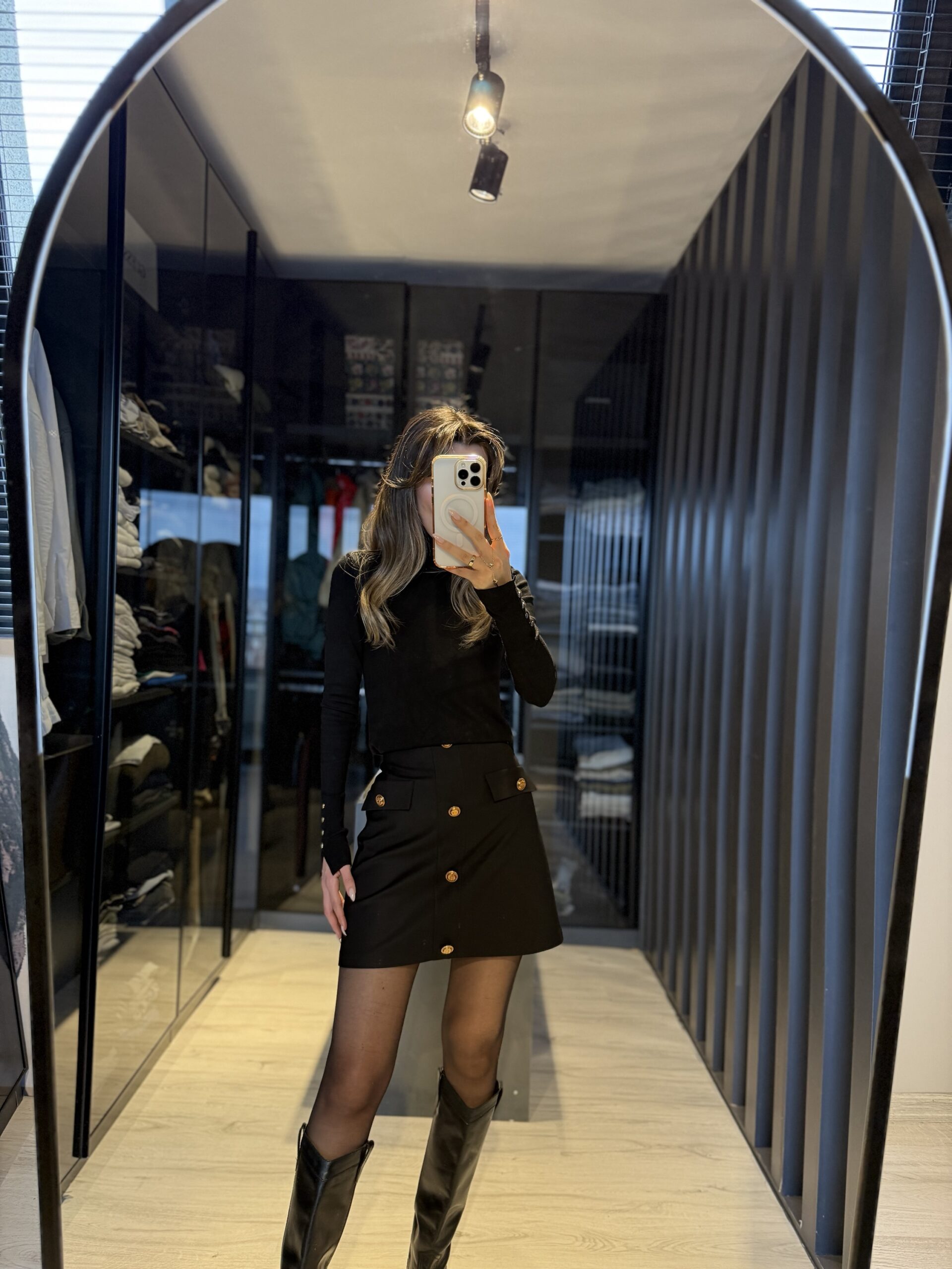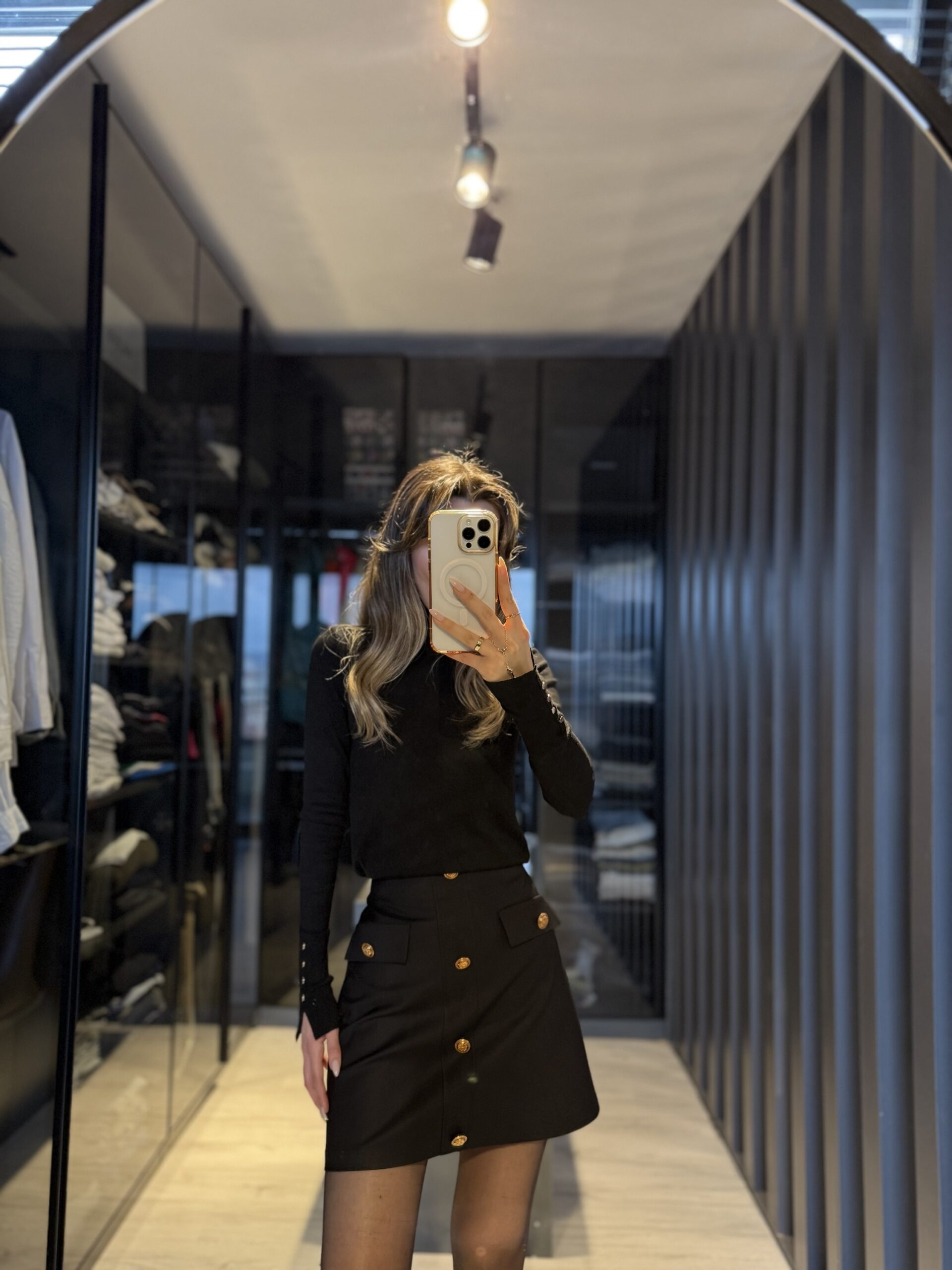 Süs cepli gold düğmeli etek