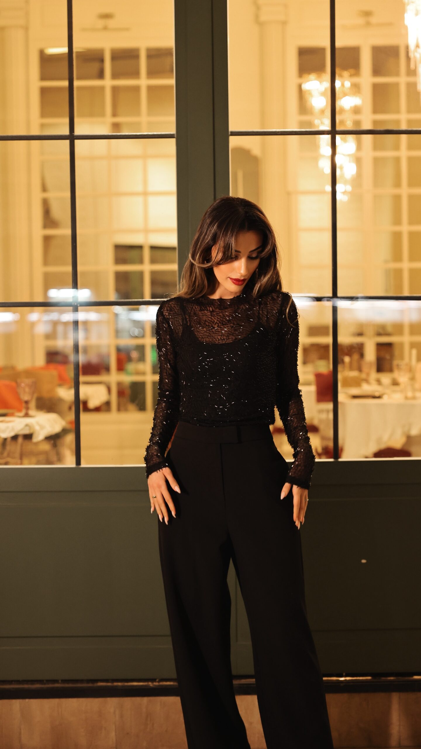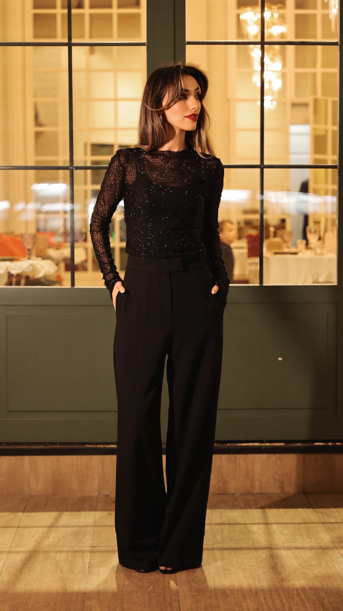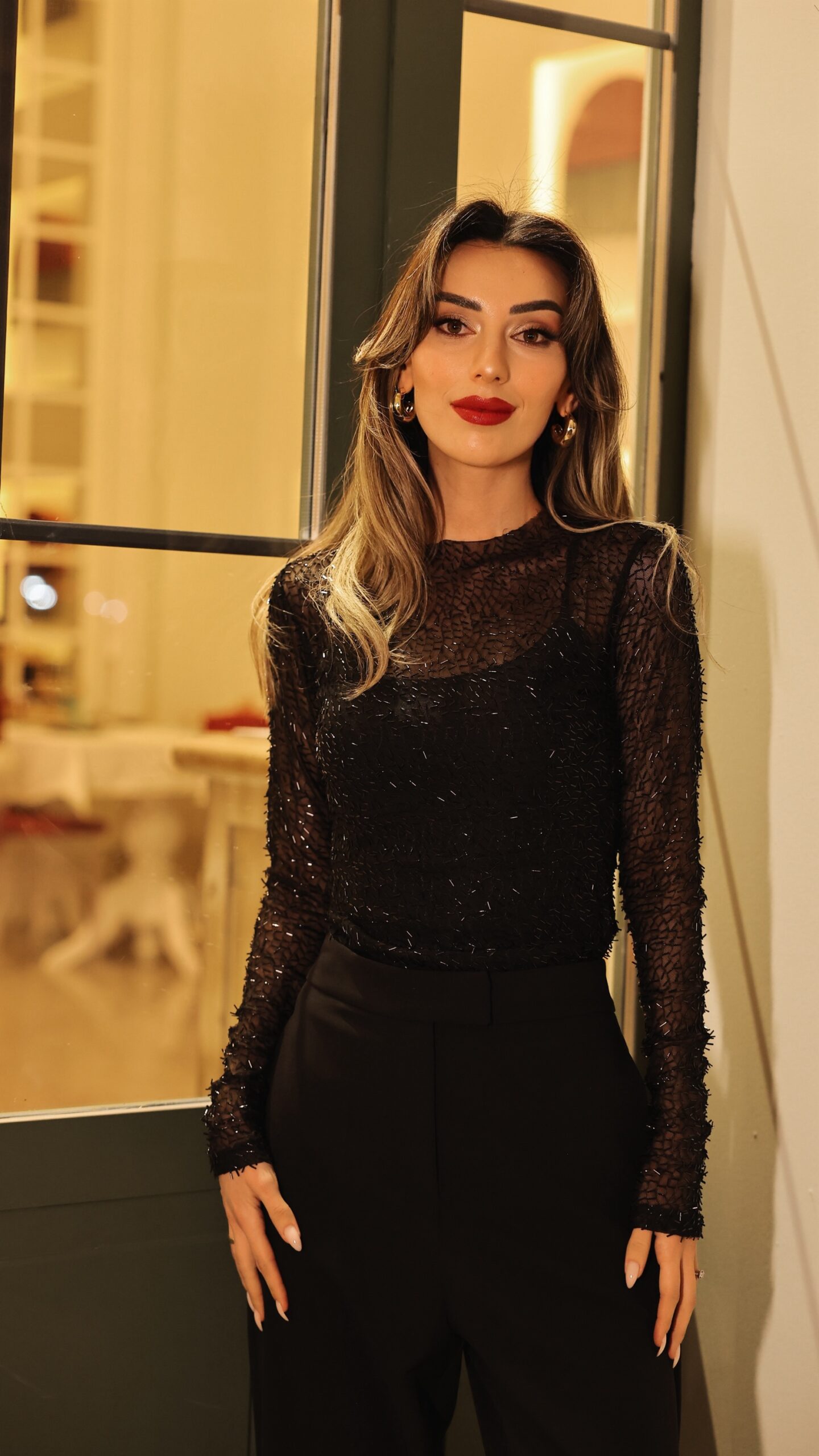 Taşlı tül jersey bluz