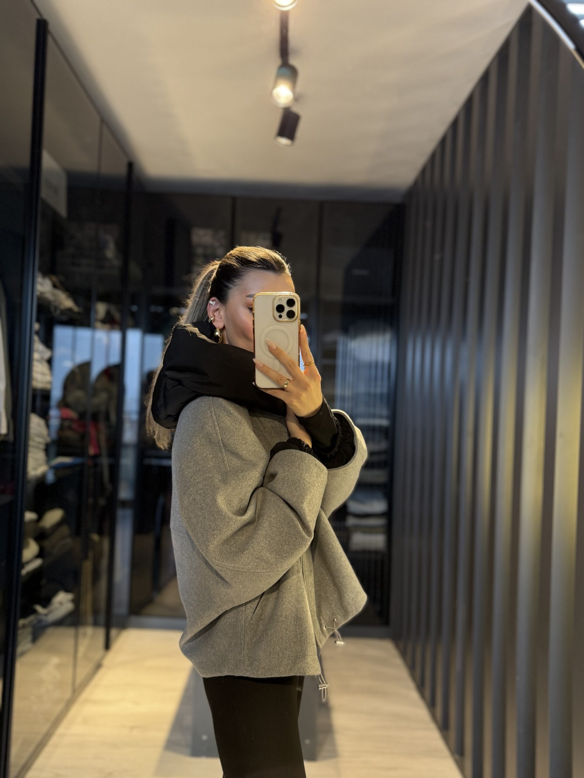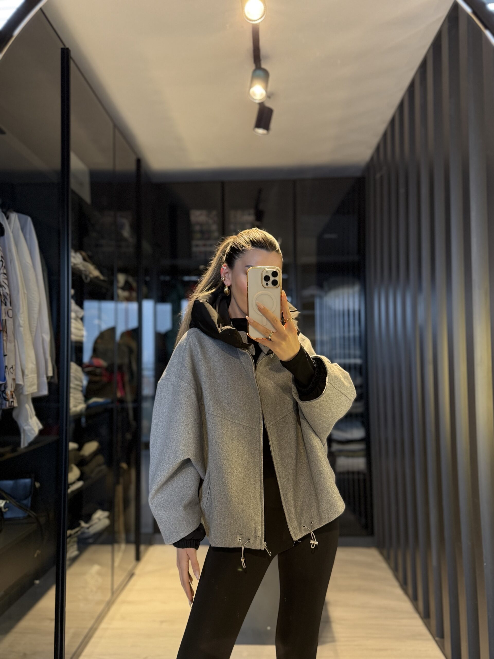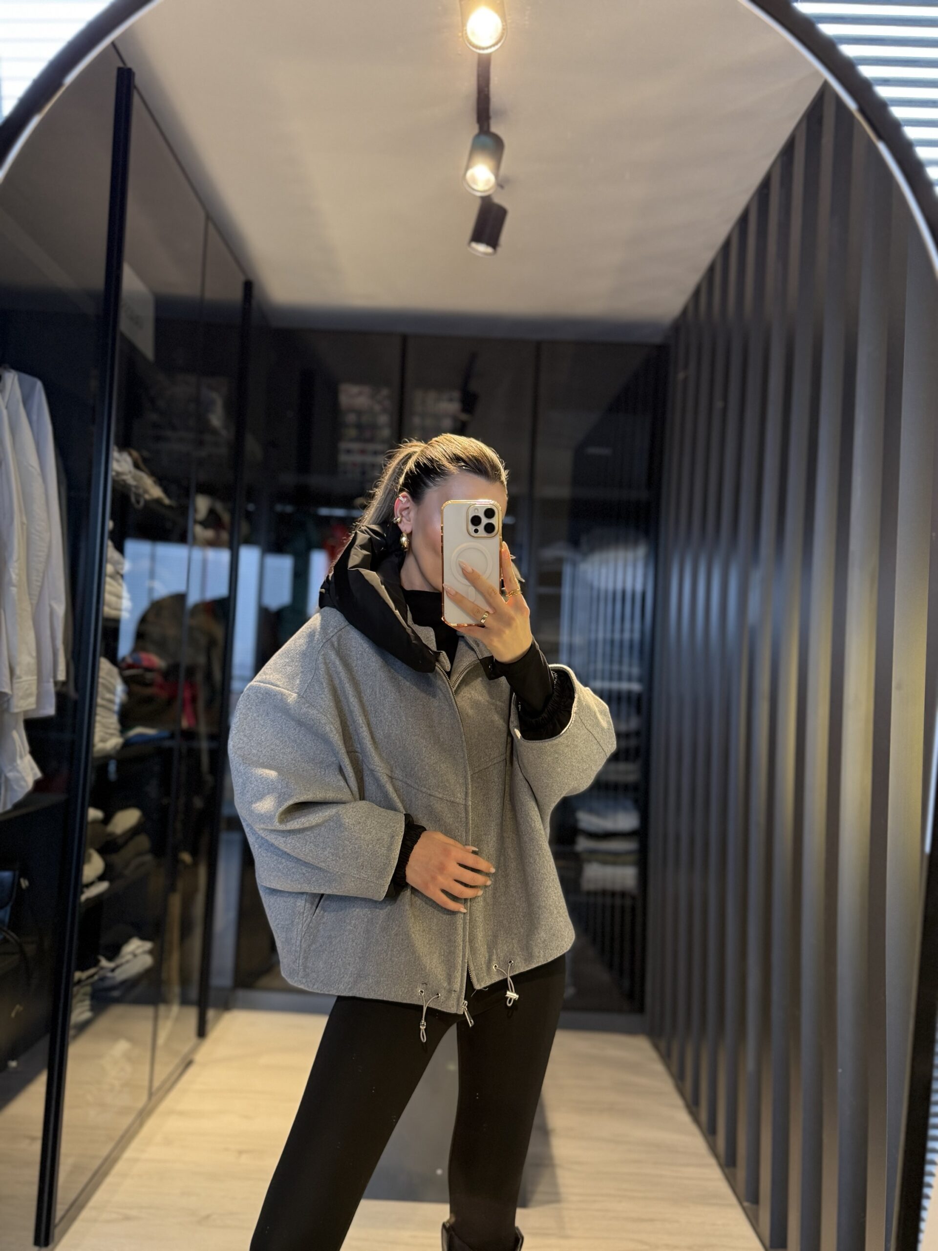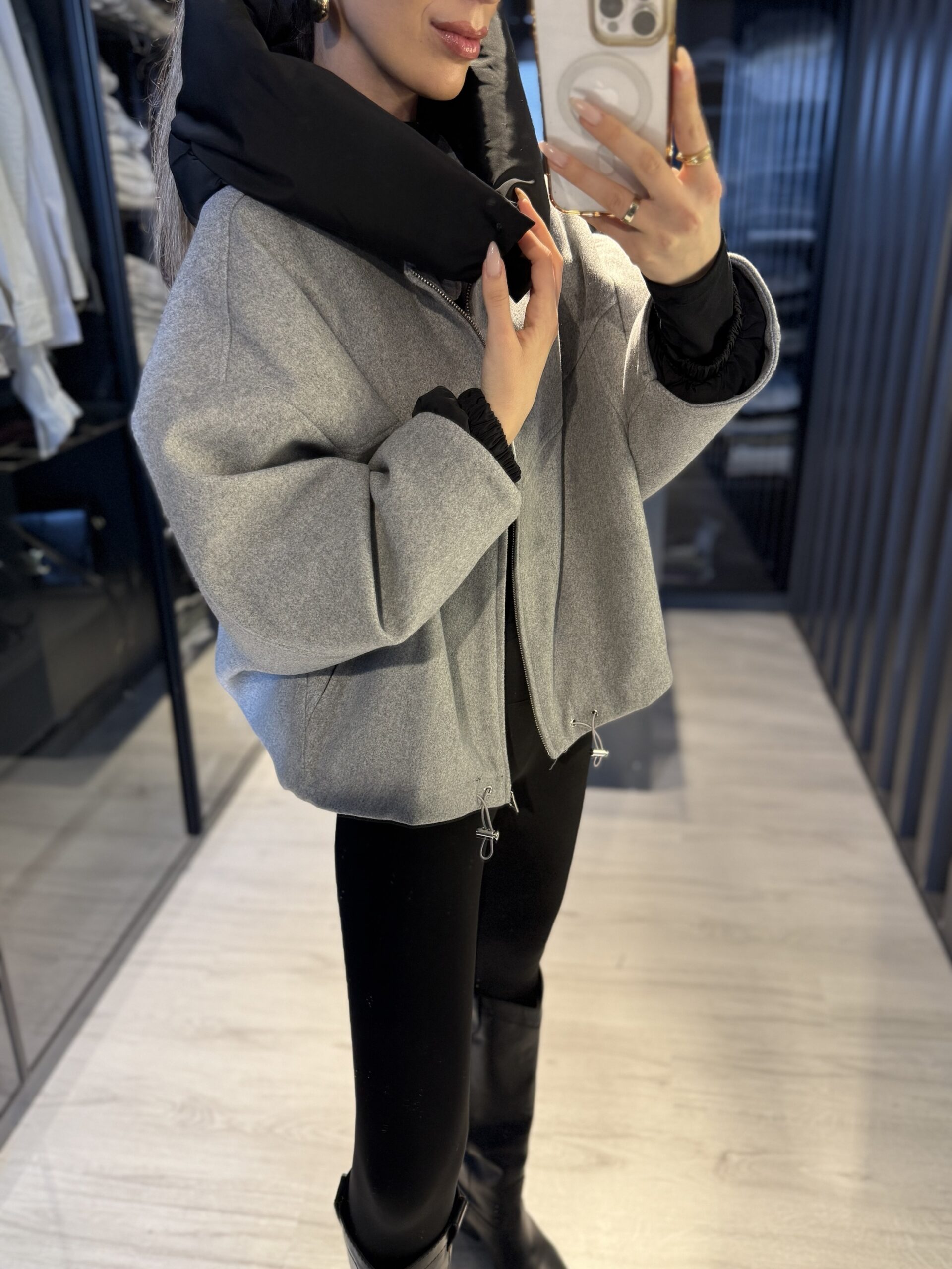 Yarasa kol kapüşonlu mont